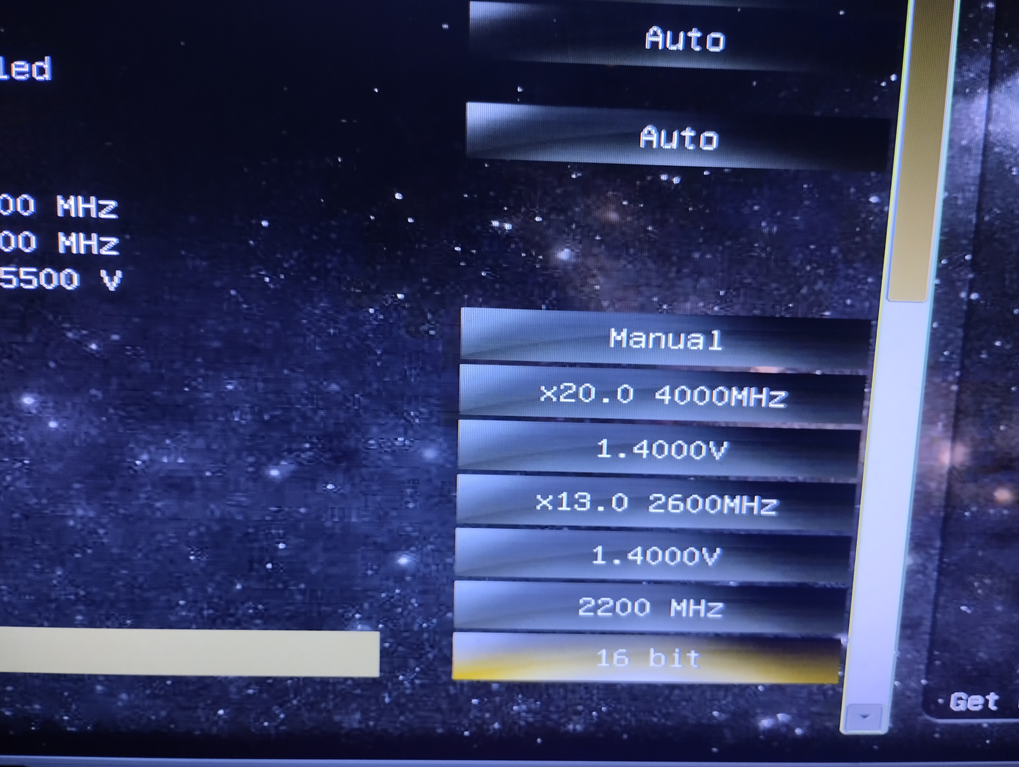 Ну крч , Выше 1.6 оперативка не гонится , тупо не запускается комп (мб из-за того что дешевая , не знаю) . По поводу разгона, появились проблемы , сбрасывает чистоты как в простое ( не знаю может в простое и нормально что сбрасывает ) , и при нагрузке так же , да + фризы появились (думаю из-за того что чистота прыгает) мб я не правильно выставил что-то , скриншот кину ниже. Если не правильно, подскажите какие выставить надо. Заранее благодарю