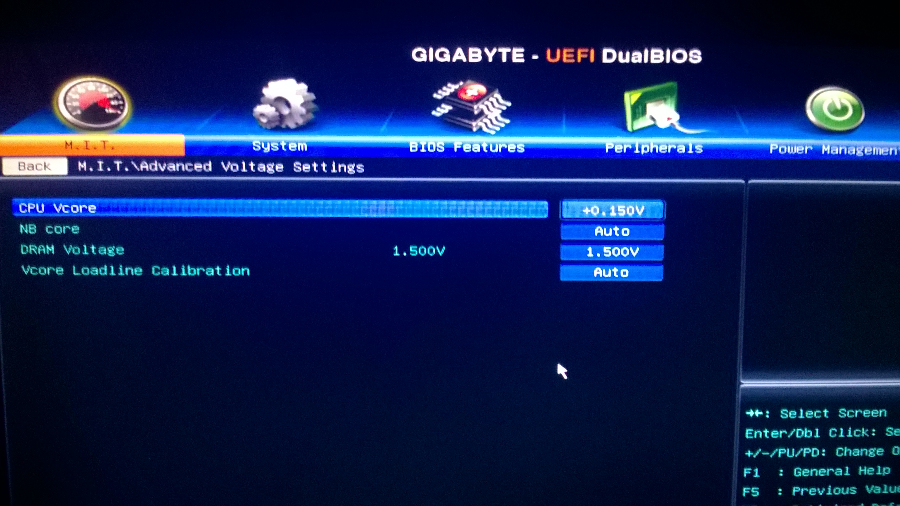 У тебя с английским как вообще все плохо? Ты не повышал а понижал вольтаж на память, в ней оставь 1.500 или 1.550. А вот CPU Vcore выставляй вместо режим АВТО то значение 1.450 хотя бы!