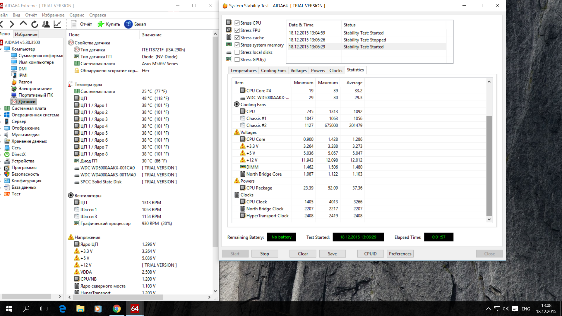 включил в биосе авт настр напруги cpu и шины. загрузился удачно, на частоте 4200Mhz в аиде под стрес тестом 66гр напр 1.42.Все вроде хорошо но через мин 30 комп завис не отвечает на команды, лечится отключением БП.Щас дальше ковыряюсь в биосе ищу стабильность