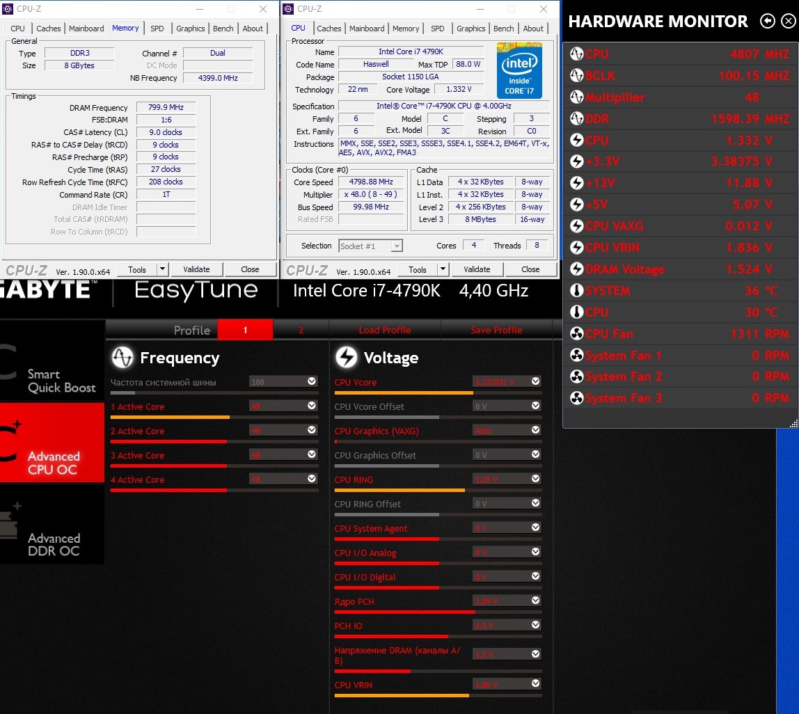 кольцевую поднял с 4.0 до 4.4 и температуры упали и в лин х до 90 греется в играх макс 65-70 не скальпирован охлад ноктуа д14 и 4 доп вентилятора Noctua NF-F12iPPC-2000 PWM ,или не стоит подымать кольцевую шину?,если она в стоке тогда температура на 4.8 не проходит стресс тесты