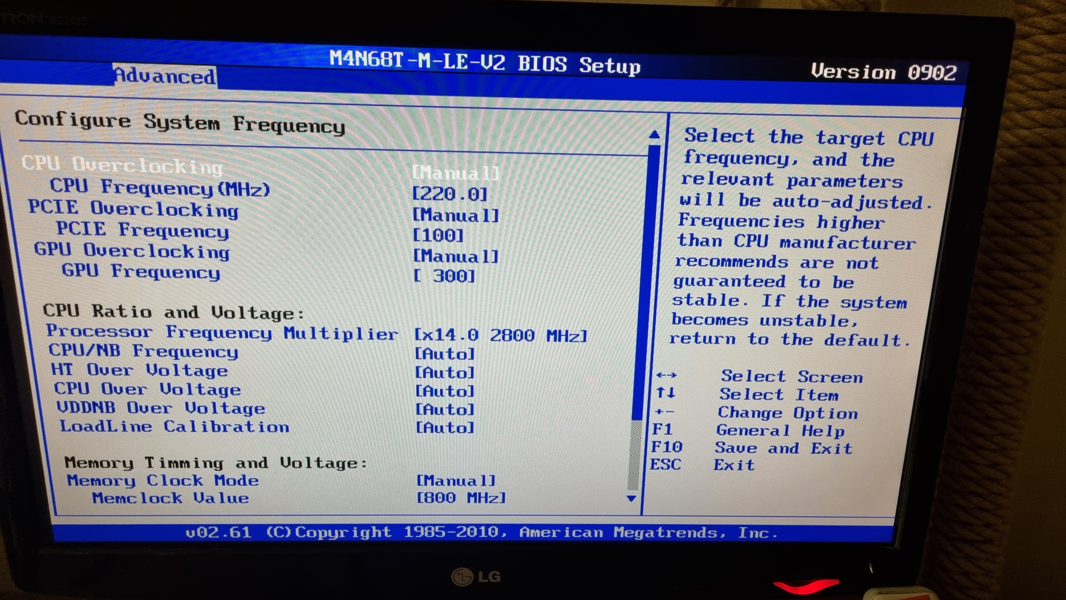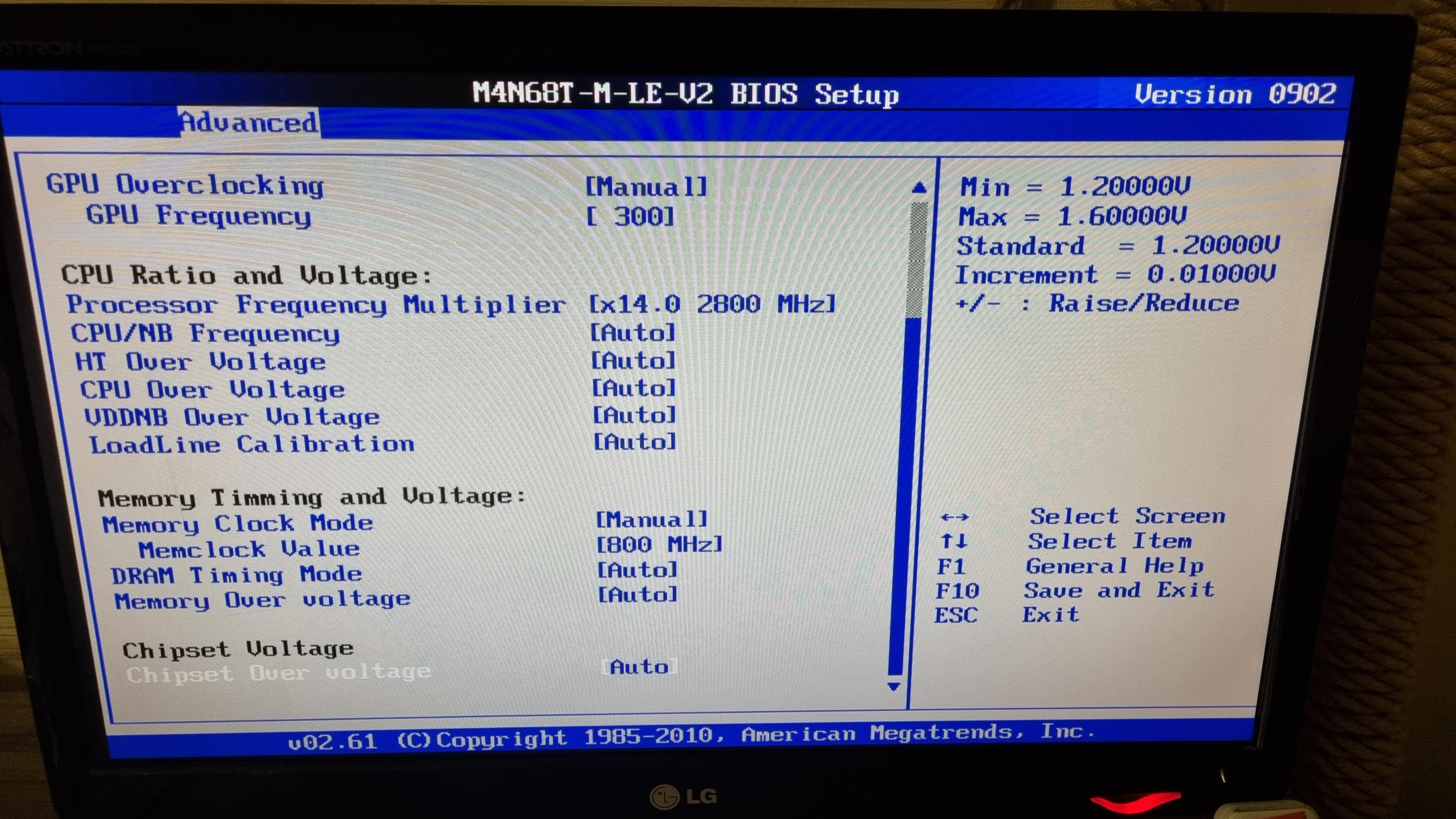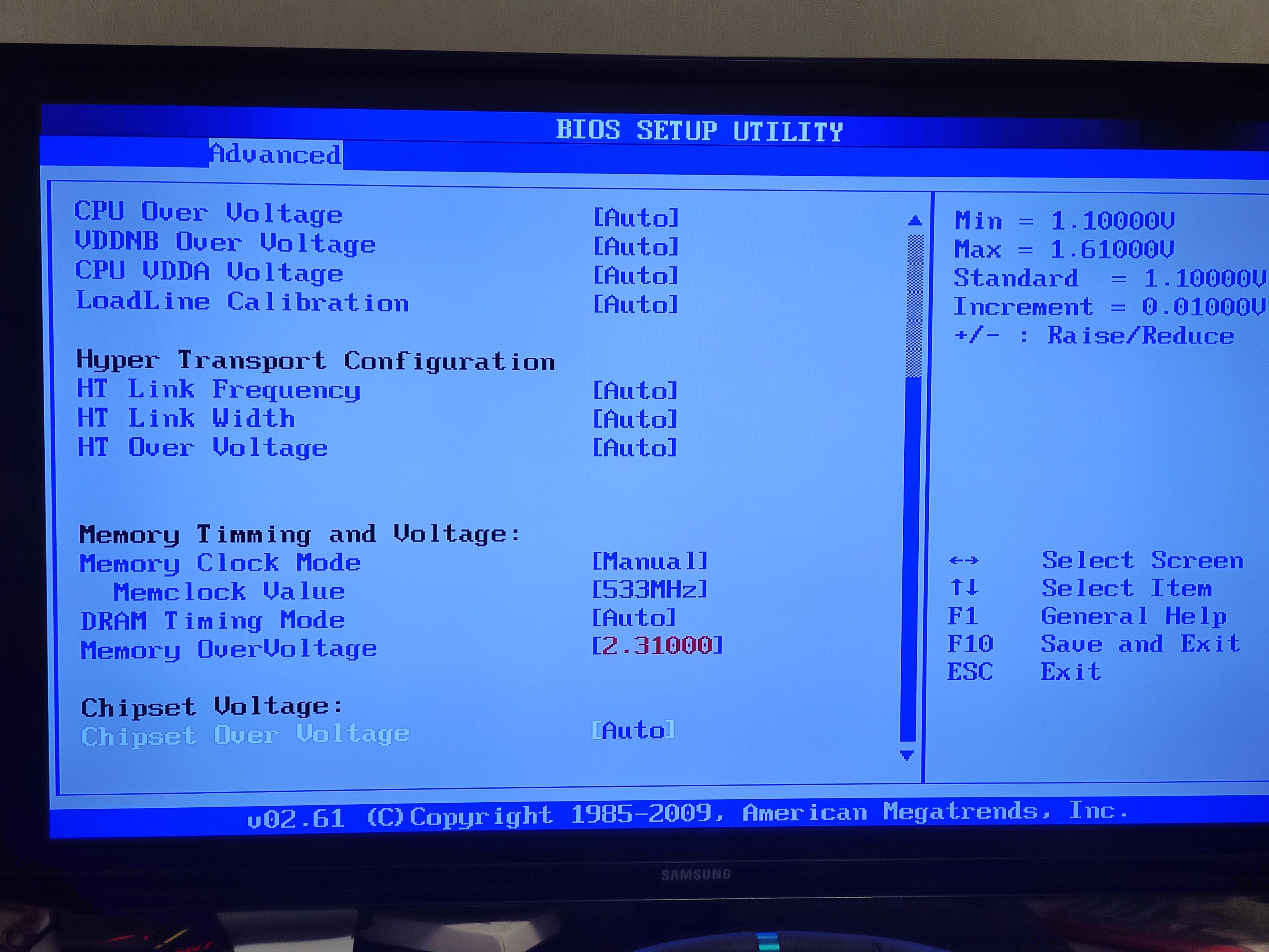 Решил я его использовать как сервер, но в ходе тестов понял, что его производительности не хватает и решил разогнать. В разгоне я профан так, что почитал старые темы и понял, что в моей матери не хватает части настроек по вольтажу. Плюс при разгоне по шине память не разгоняется отдельно, а принимает параметры JDEC + разгон шины, а ручные настройки игнорирует. Поэтому я решил выставить нужные тайминги и вольтаж памяти и догнать шину, чтобы частота памяти встала в заводской разгон. Поставил весь доступный вольтаж по прочитанным гайдам, но компьютер не завёлся и биос написал, что разгон не удался. Все доступные параметры биоса сфоткал