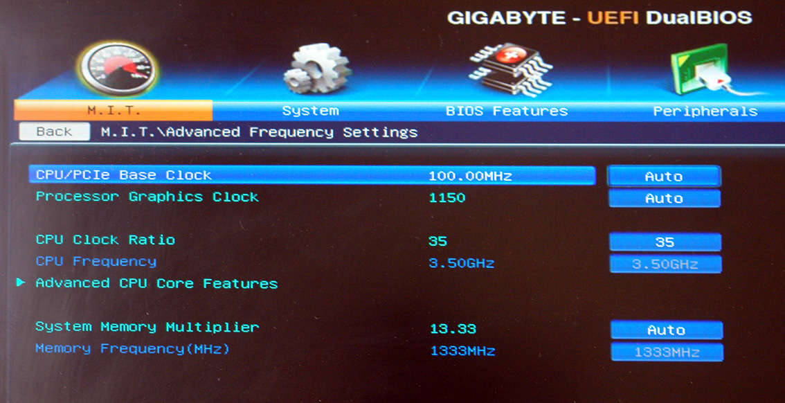 Здравствуйте. Возникла проблема. Разогнал свой 3770k из 3D биос (конфигурация приведена ниже). С лёту выставил 1.3 напряжение и 4,5 Ghz частоту увеличив множитель на 45. На удивление всё заработало и даже выдержал 5ти минутный рендер в максе, прогревом до 90 Цельсия. Дольше проц работает на всю катушку редко, так что я остался доволен. НО позже руки зачесались, и поставил ему множитель 47. Проработал минут 30 и получил синий экран, AIDA64 сообщила о throttling и overhiting соответственно. После этого и начались неприятности, никак не хотел перезагружаться, потом выдавал сообщение об ошибке интерактивного входа. Сбросил биос на дефолт. Загрузился. И решил потихоньку вернуться к своим проверенным 4,5 Ghz на которых проработал около месяца. НО не тут то было. Теперь все утилиты показывают под нагрузкой 3,7 Ghz при том что в биосе выставлено 4,5 Ghz. И находясь в биосе я вижу именно 4,5 Ghz. Но выходя из биос в windows не вваливаюсь. Комп зависает. После безопасного режима, загружаюсь и получаю опять же 3.7Ghz, хотя Мой компьютер тоже пишет Core i7-3770K, 4,5 Ghz. Вопрос: как победить? Почему в биосе всё работате нормально но на такой частоте не грузится виндовс, хотя раньше всё работало...