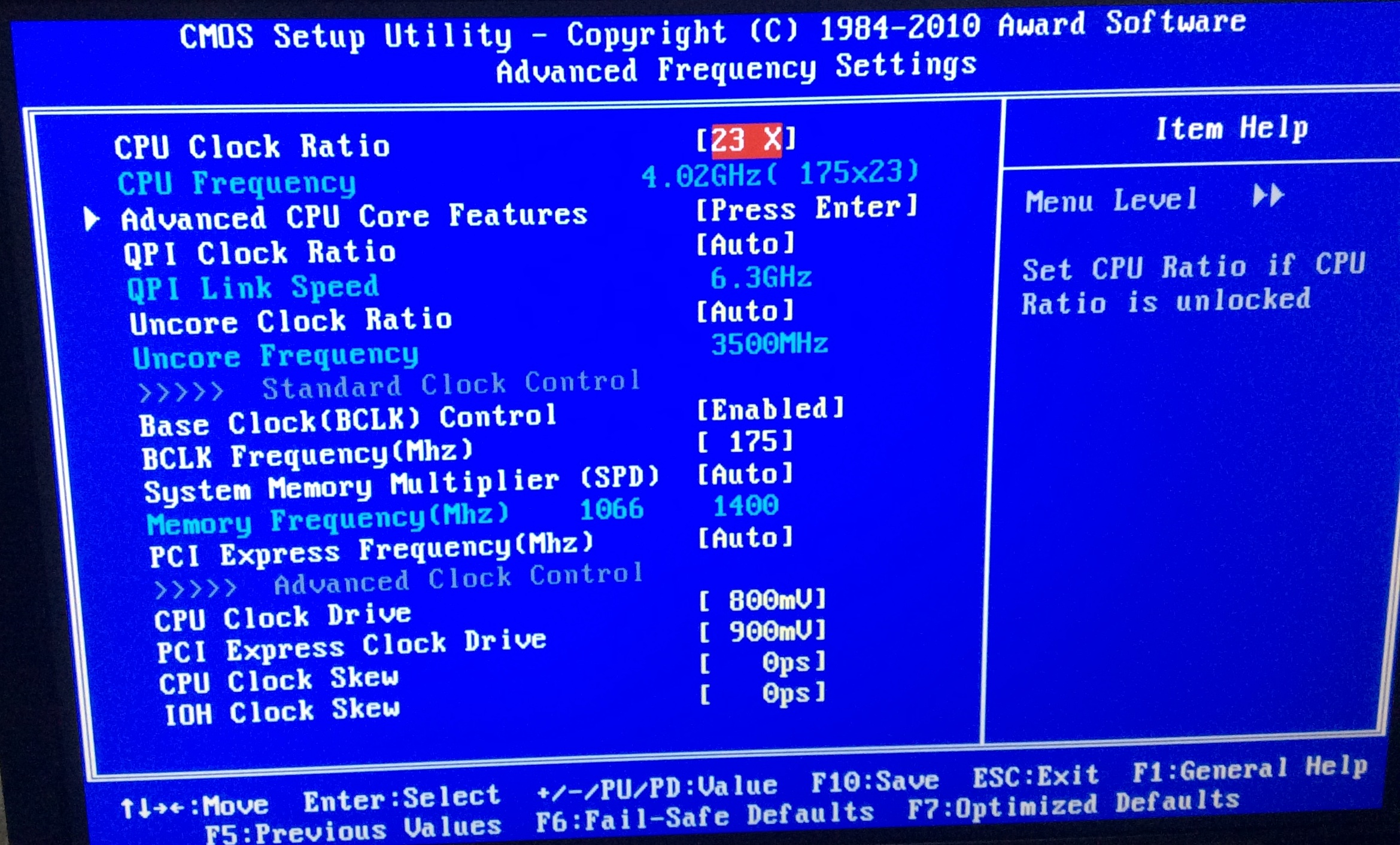 Добрый день уважаемые пользователи! Вчера осуществил разгон процессора i7 950 (номинальная частота 3,07 Ghz) до 4,03 Ghz (до 4,2 Ghz у меня не получилось, компьютер постоянно уходил в ребут). Характеристики железа, параметры биоса прилагаются в скриншотах. Температура в простое 45 - 47, под 100% нагрузкой до 79 градусов. Охлаждение CPU cooler Zalman CNPS9900A LED. Сам являюсь в данном деле новичком! Перед разгоном конечно же ознакомился с статьями на форуме, но мб что-то я сделал не так или можно улучшить некоторые показатели. В общем дайте дельный совет, правильно я сделал или нет. Является ли данная температура в простое приемлемой? Спасибо!