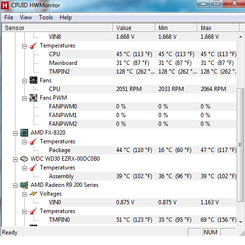 Здравствуйте. Начну с характеристик. Материнская плата - M5a97 EVO r2.0 (Версия биоса 2501, последняя, как узнал) Процессор - AMD FX-8320, охлаждение покупал отдельно. Оперативная память - DIMM DDR3, 8ГБ (2x4ГБ), PC3-12800, 1600МГц, Crucial Ballistix Tactical Жесткий диск - WDC WD30 EZRX-00DC0B0 SATA Disk Device 3 гб Видеокарта - MSI R9 270X 2G - разогнана частота ядра с 925 до 975. Блок питания - Scythe Kamariki 4, 750 watt