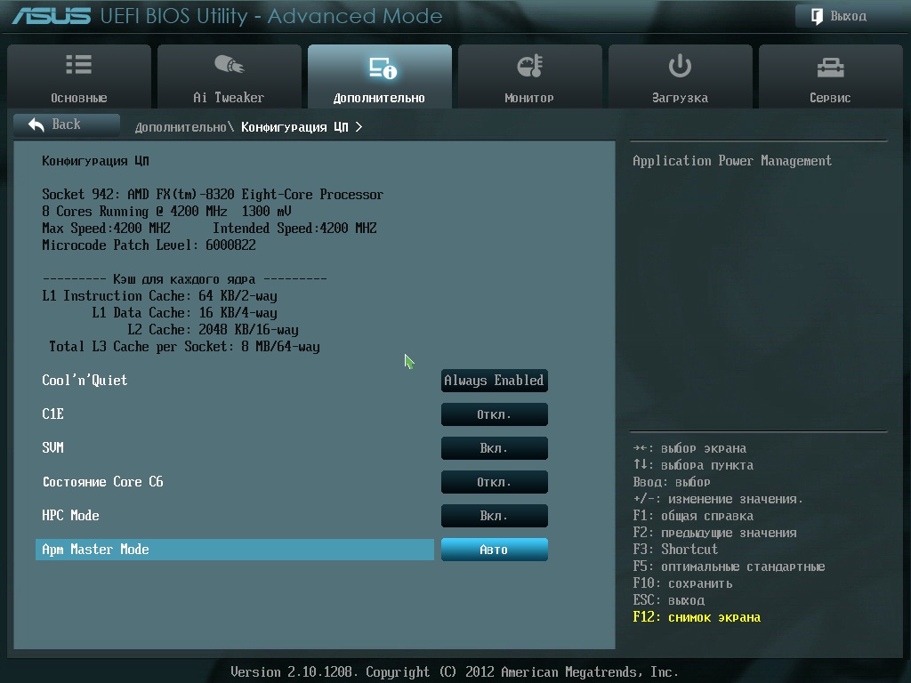 Такие параметры сейчас в биосе. При изменении напряжения, либо висит на загрузке биоса, либо на загрузке виндовса, а помогает встроенный переключатель авторазгона на плате, который сбрасывает напряжение. Apm и hpc отключал, итог тот-же самый. Напряжение ставил 1.320