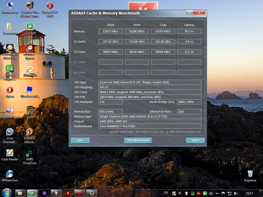 Мать M4A88TD-V EVO/USB3, Память DDR3 1333 MHz KVR1333D3N9/4G, одной планкой Собственно ТЕПЕРЬ ВОПРОС насчет контроллера памяти. Память я выставил 1866 , напряжение 1,7v, тайминги 9-11-9-27. Когда ставишь частоту контроллера 2240, при cpu/nb 1.250v , не стал проходить тест linx. linx выдает ошибку где то на 4 минуте. При 2540 и 2800, напряжении 1,350v, тоже ошибка линкса. А так система стабильна, долго не тестировал, но в играх лагах небыло. Собственно в чем может быть причина? cpu/nb load line calibration Я ПОСТАВИЛ ВЫКЛЮЧЕННЫМ, но если бы просадки и были, то незначительные , 2240 MHZ и НАПРУГЕ 1.3v. он должен был держать. Или проц не держит вообще разгон контроллера?