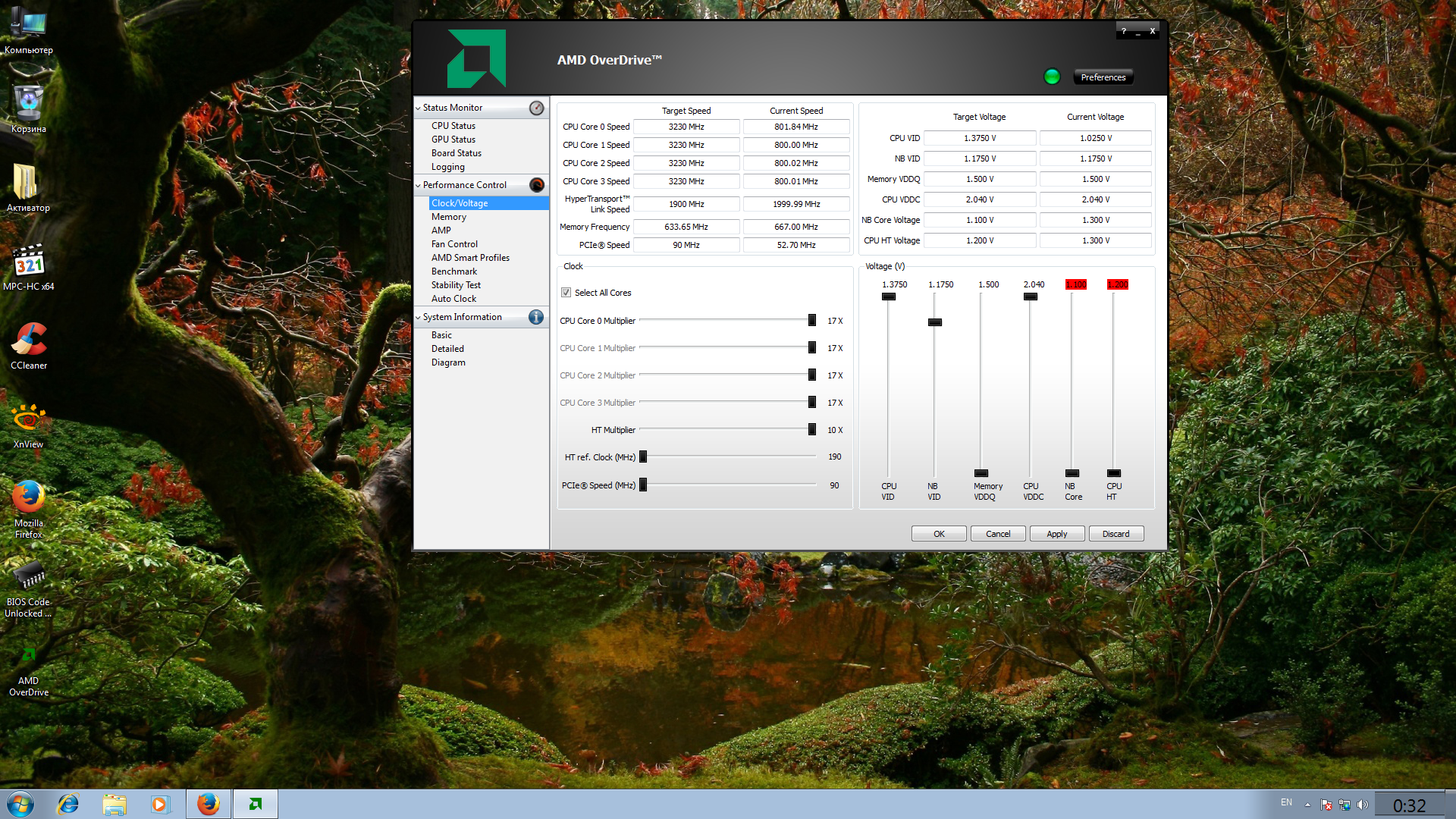 Добавлено спустя 2 часа 13 минут 38 секунд: и еще интересная особенность после разлочки 4 ядра в AMD OverDrive параметрах Clock/Voltage даже на минимальных минимальных параметрах NB Core и CPU HT выделяются красным индикатором (на скриншоте видно), возможно и проблема "холодных" запусков системы с этим как то связано, подскажите что со всем этим можно сделать или вообще стоит оставить эту затею с разлочкой ядер
