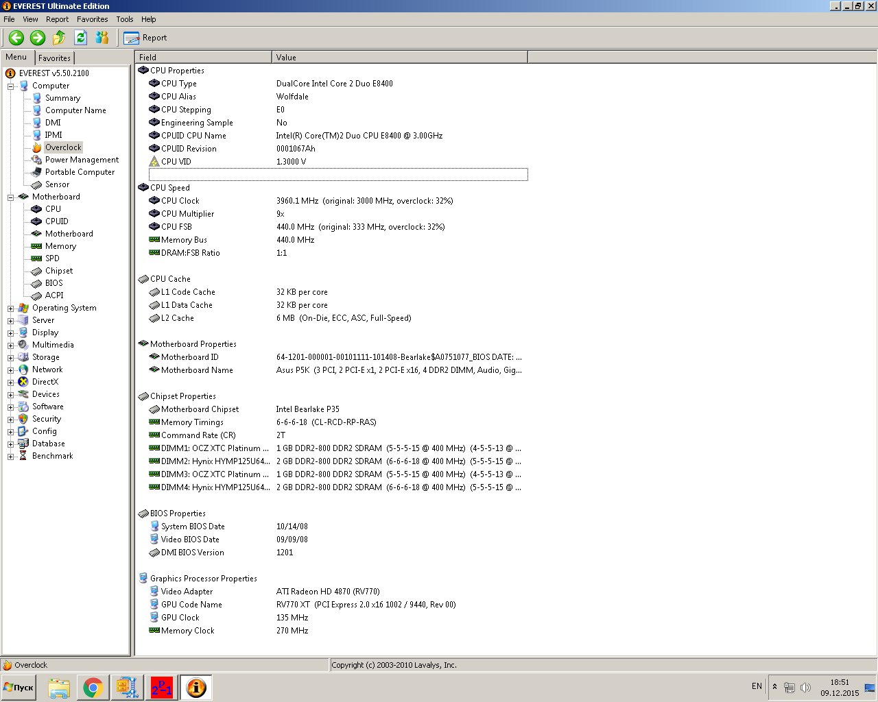 Имеется е8400 оверлокнутый до 3960мгц(степинг Е0), 6гб озу, асус р5к, 4870 512мб палит, 450вт БП. Играя в игрушку нфс райвалс, были замечены проседания фпс с 30 до 18. Запустил мси афтербернер и проверил температуру и загрузку ЦП. При 98-100% загрузки ЦП, температура выше 66 градусов не поднималась, при этом фпс упал до 22. Я подумал, что проц уходит в троттлинг. Скачал прайм95, CPUID HM Pro и начал тестирование. Троттлинга я не увидел, разве что падение напряжения с 1.4 до 1.33 при 100% нагрузке. Ниже скрины. Ваше мнение по всему разгону.