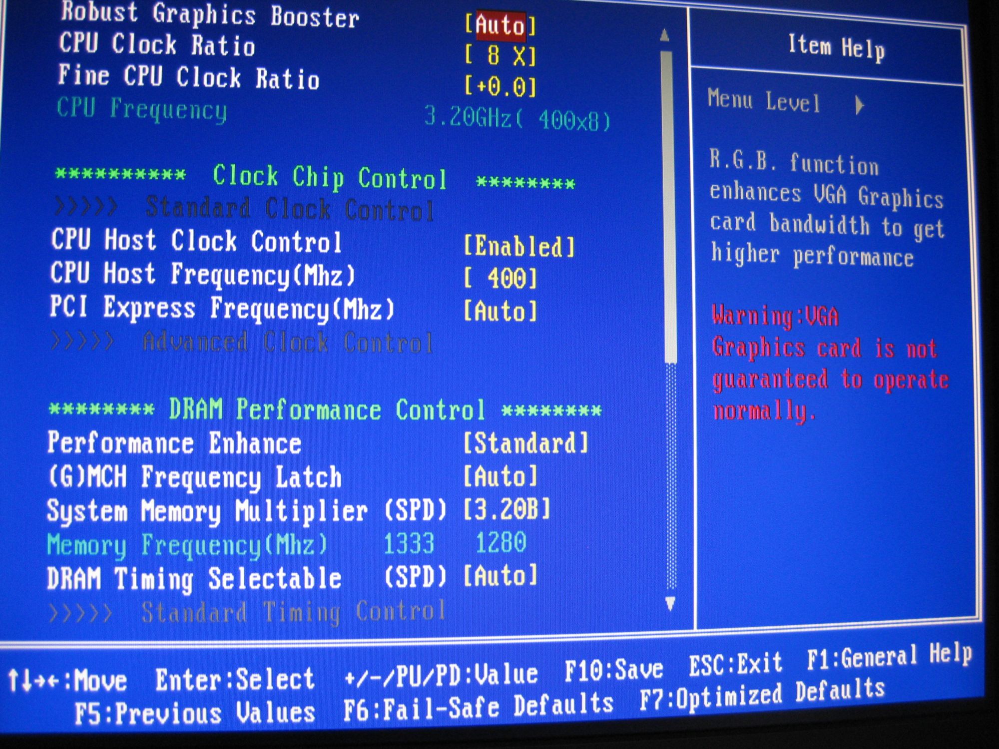 Суть проблемы вот в чем: я изменяю частоту системной шины (по умолчанию - 333 МГц с множителем 8) до 400 МГц, чтобы получить частоту проца 3.2 ГГц. Частота памяти соответственно повышается. Чтобы не перевалить за отметку 1333 МГц, изменяю значение параметра System Memory Multipler (SPD). После этого сохраняю все, комп на несколько секунд выключился, затем включился на несколько секунд (экран монитора пустой), затем снова выключился на пару секунд, и после этого пошла загрузка системы. Все загрузилось, работает, НО частота процессора так и осталась 2.66 ГГц. Я снова зашел в БИОС, а он мне ругается так: "the system has experienced boot failures because of overclocking or changes of voltages. last settings in page may not coincide with current h/w states" "Система пережила неудачи загружается из разгона или изменения напряжений. Последние настройки в странице могут не совпадать с текущей ч / б состояний" Настройки стоят те, что я указывал, при разгоне, но они не сохраняются, и система грузится со стандартными. При возврате на стандартные настройки все абсолютно нормально работает. Пробовал увеличивать частоту системной шины до различных значений (350, 375 МГц) но результат один и тот же. Настройки сохраняются, но система грузится на стандартных, а БИОС ругается, что я пытался разгонять проц. Пробовал немного поднимать напряжение питания процессора - безрезультатно. Подскажите пожалуйста, куда копать? Всем заранее спасибо за внимание.