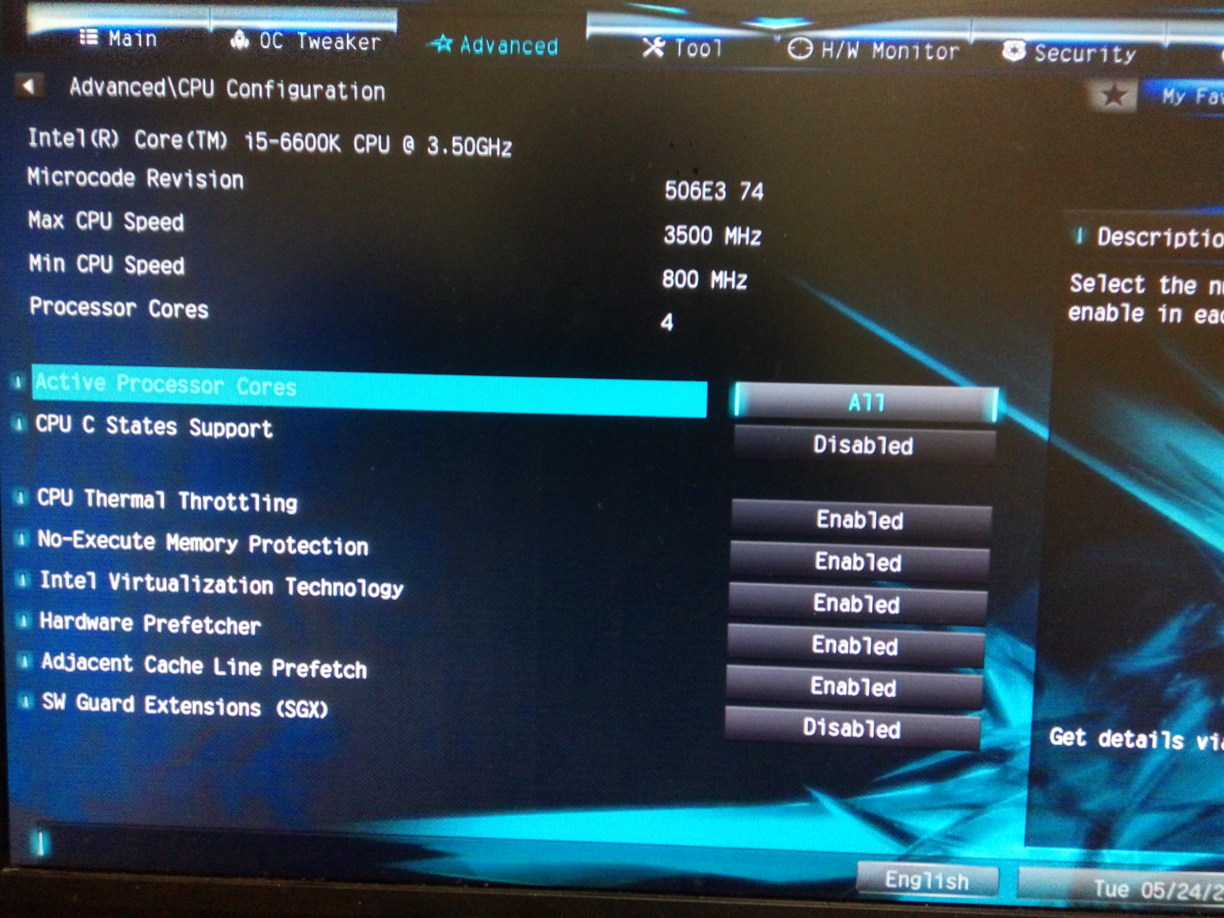 Добавлено спустя 3 минуты 18 секунд: Ах да, при разгоне камня, оперативка не хочет работать на 3000, система не стартует. В стоке спокойно работает, с разгоном лишь 2133. Также в биосе заметил случаются длительные подвисания секунд по 15-20. С завода биос был 2.1, обновил до 3.2 - проблема осталась.