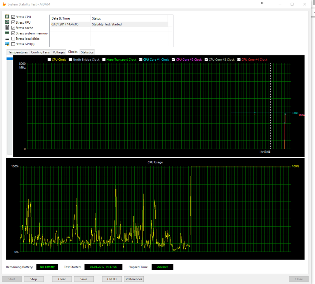 Как видно из графика и из статистики. На повышенной частоте работает только первое ядро