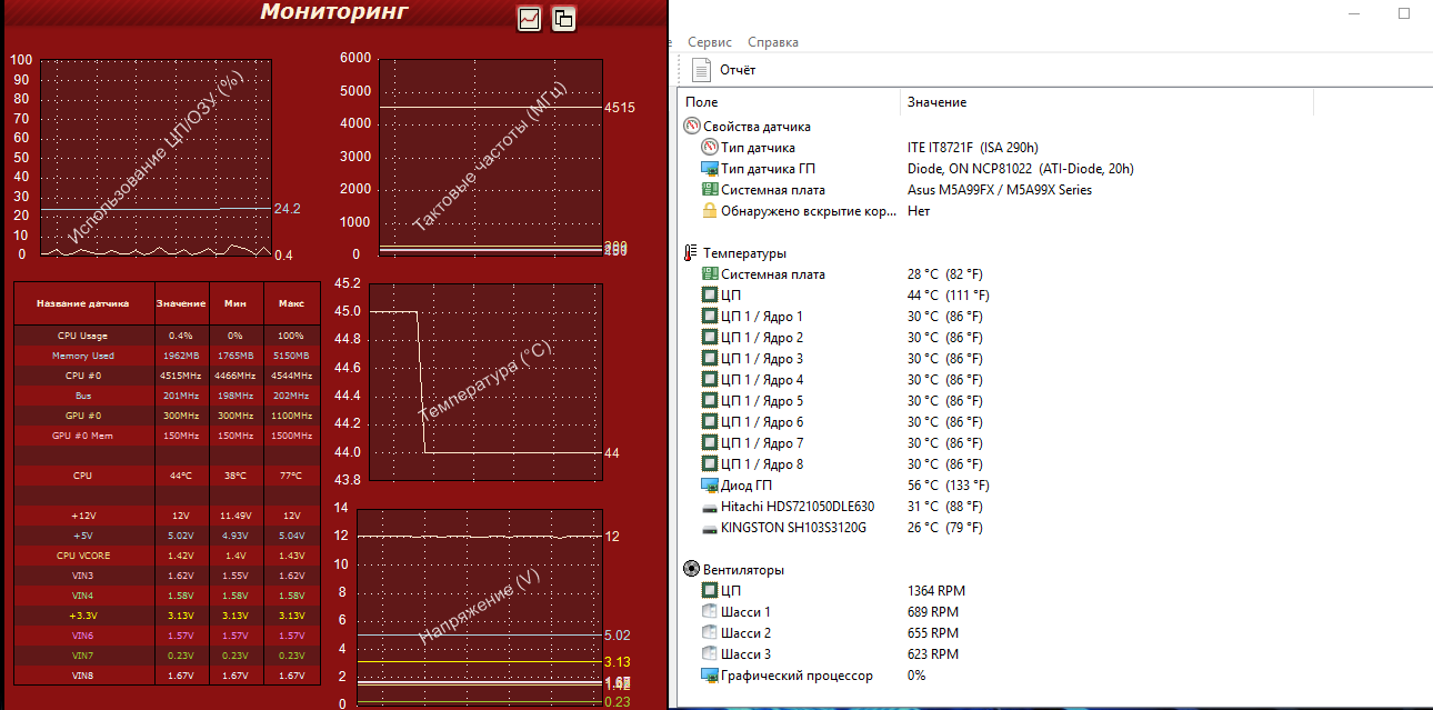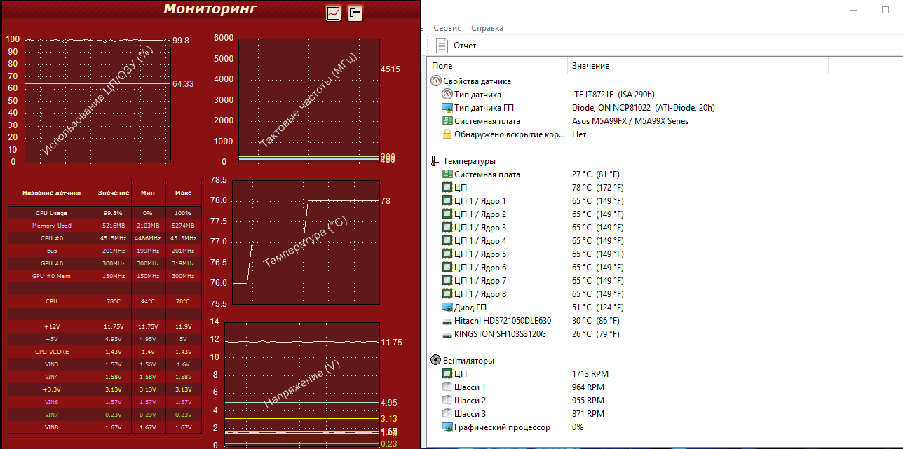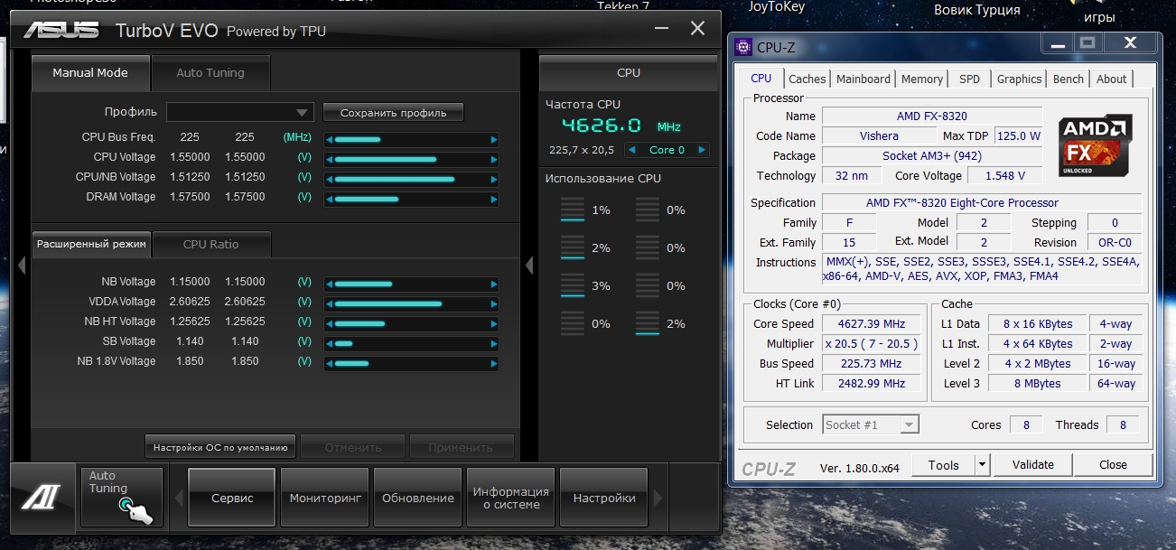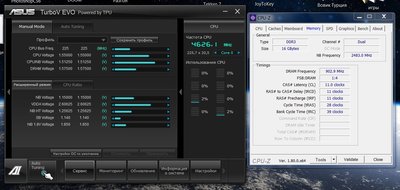 Пока, что пробовал разогнать самостоятельно, опираясь на какое-то видео в ютубе. Настроки: Напряжение проца в стоке, после покупки: 1.344в DIGI+ не трогал (Добавляю. Компьютер иногда просто зависает намертво. Пришлось подкрутить: CPU load line(75%) , CPU/NB load line(50%) ток CPU(130%) и CPU/NB(130%). Оперативка: Стоит профиль (D.O.C.P) 1867MHz 9-10-11-27 1.5в 1.3в CPU/NB 2400MHz HT 2600MHz Множитель 22.5 , соответственно частота 4500MHz Напряжение поставил 1.4в Шину не трогал. Вопрос: В правильном ли направлении я двигаюсь? Ничего не перекрутил? Что можно еще изменить?