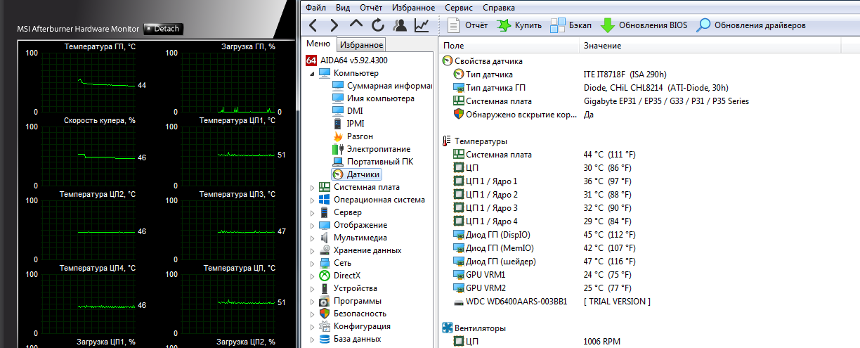 расхождения серьезные( допустим, утилита от MSI показывает верно, не сильно ли греется камень? Живу в РнД, т.е в комнате +30, вместо корпуса коробка из-под обуви, на которой лежит плата