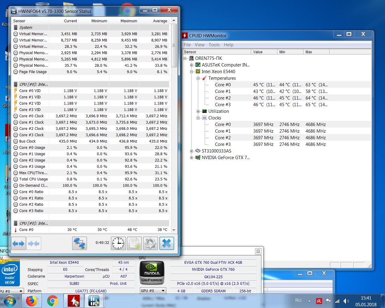 е5440 Собственно взял 3.6Ггц при 8,5х424 шине вообще без проблем. Но заметил в HWmonitor гуляет частота проца от "стандарта" 3.6Ггц, до минимума 2,5Ггц и максимума 4,5Ггц. вроде турбобуста на 775 же нет. В биосе отключил С1Е. Вольтаж выставлен 1.3 на проц, а не авто. Что ещё может ТАК завышать пиковые частоты? Думаю из-за этого буста по частоте дальнейший разгон до 3.7Ггц выдаёт редкие зависания программ и игр.