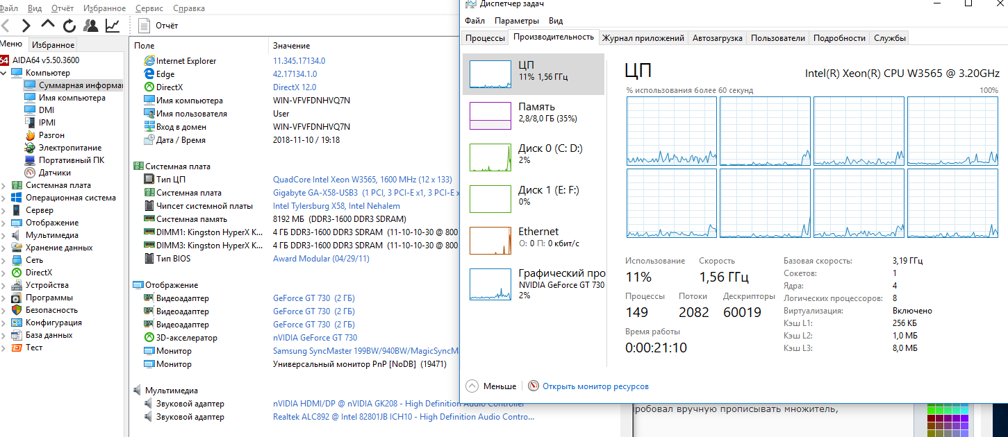 Добавлено спустя 2 минуты 58 секунд: а вот так выглядит в аиде, осст и диспетчере задач,т.е. где то теряется 1 множитель.ну это уже лучше чем было.