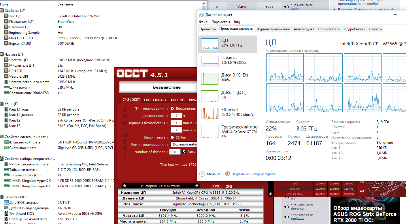Добавлено спустя 1 час 31 минуту 33 секунды: добавлю ещё такой скрин,при изменении частоты комп вроде как видит изменение оной,но вот диспетчер задач всё равно упорно твердит,что без изменений. Аида и ОССТ показывают одинаково.