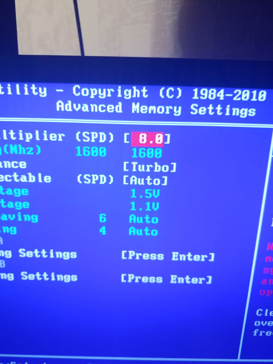 Доброго времени суток, уважаемые оверклокерс. Есть система: Gigabyte P55a-UD3R rev.1.0 Xeon X3450 DDR3 patriot 1600 cl11 4Gb + AMD r3 1600 Cl11 2GB (и мой комплект AMD R5 1600 cl11) Radeon R9 380 Strix 2Gb OC Ситуация: Процессор в разгоне, частота 3.8, без бсодов линкс с напряжением 1.275, температуры (скальпировал, очистил, MX-4 под крышку и на герметик, ставил проц с откручиванием креплений, чтобы крышку не сдвинуло) не выше 75-76 градусов. Башня Deep cool Lucifer k2. (при 1,3 до 82) Есть вылеты, как в биосе, так и в работе. Заметил, что они при нагрузке на память. Прикладываю фото напряжений и настроек биоса. Не могу это побороть.. Приведу цитату тестов данного набора памяти в разных слотах: "Тесты проводились с помощью программы TestMem5 Тесты: 1) Patriot, 4Гб, 2 слот - вылеты в биосе/вылеты при загрузке винды 2) Patriot, 4Гб, 4 слот, вылеты при включении, потом нормальный запуск, 3 нормальных теста без ошибок, после тестов неожиданно потух. Минус. 3) AMD, 2Гб, 2 слот, вылеты в биосе, потом нормальный старт, 3 отличных теста. Спокойное отключение. 4) AMD, 2Гб, 4 слот, все идеально, 3 теста без ошибок !!!!! 5-6) AMD, 8Гб, 2 и 4 слот (раздельно) - вылеты. От вылетов биоса, до вылетов в тестах. Также заметил - не всегда стартует встроенная в плату post-карта с этапами загрузки система. Либо потухшая, либо все диоды сразу горят. Как действовать далее? Может от объема так? 2гб планка показала себя стабильнее, ежели на 4 и 8 Гб. Также заметил на 2 ногах 4 слота следы флюса... Неужели нести в ремонт таки? Никаких сбитых дорог не вижу, все порты целые. Жаль мультиметра нет с такими щупами, чтобы напряжения проверить на контактах." Данные тесты проходили на полном стоке, все по дефолту. Clear cmos. Также симптомы: обороты куллера CPU вечно 1900-2600, хотя вертушки на такое не рассчитаны. Из биоса во всех режимах (PWM/Voltage/Auto) так же само. SmartFan не берет. Родная утилита - относительно берет, но вносит нестабильность из-за старого драйвера. Реально ли исправить мою проблему на месте? Есть ли грубые ошибки в разгоне (помимо того, что я не до максимума гоню)?