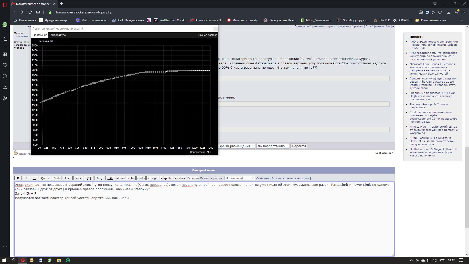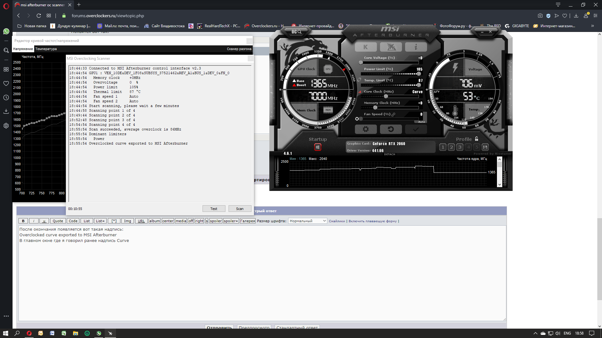 Добавлено спустя 9 минут 1 секунду: После окончания появляется вот такая надпись: Overclocked curve exported to MSI Afterburner В главном окне где я говорил ранее надпись Curve