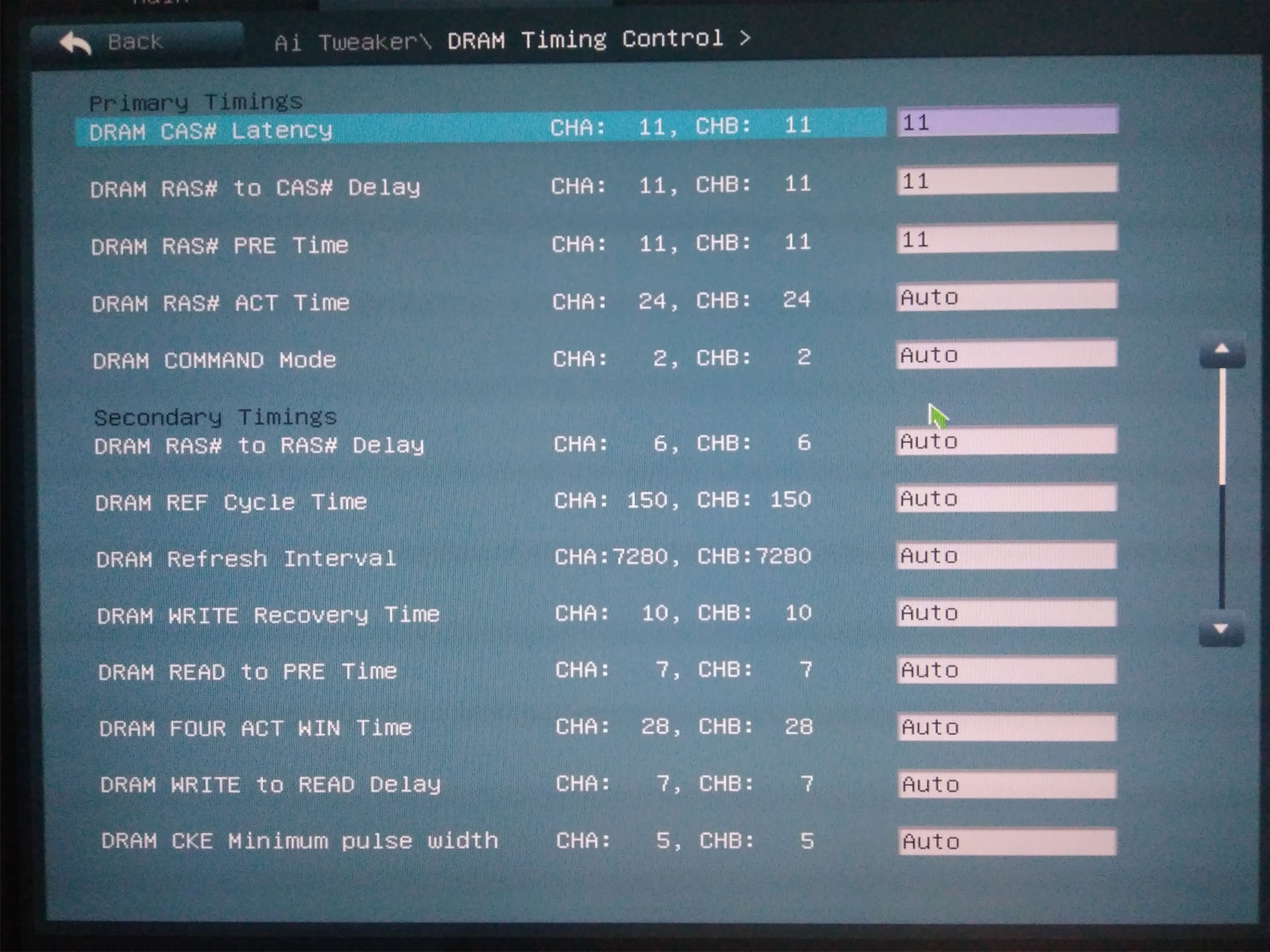 На авто она фигню обычно ставит. У меня 9-13-13-32 а это не работоспособно на частотах выше 1600. у меня оптимально чтобы первое значение было именно 10, 9 и 11 не работает. Хотя бы первичные надо зафиксировать вручную. поднятие напряжения на разгон почти не влияет. Пробовал поднять напряжение и снизить тайминги, не помогает, синие экраны всё равно достают. И приводит к повреждению биоса.