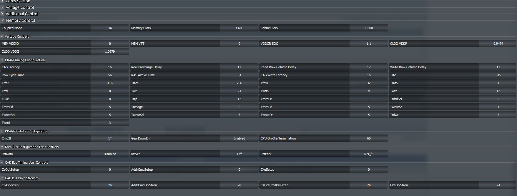 Здравствуйте, приобрел g.skill f4-3200c16d-16GTZR, память отказывается вообще нормально гнаться. Берет частоту 3600, но тайминги ниже 20 не получается опустить. Думал ужать на cl15 3200 хотя бы, но тоже система не стартует. Только xmp профиль. Чипы стоят samsung b-die Part Number K4A8G085WB-BCPB. Плата Asus prime x370-pro и ryzen 3600. До этого стояла обычная зелень на b-die (2x4) и работала на частоте 3466 (16-19-19-38) без проблем. Что можете посоветовать ?