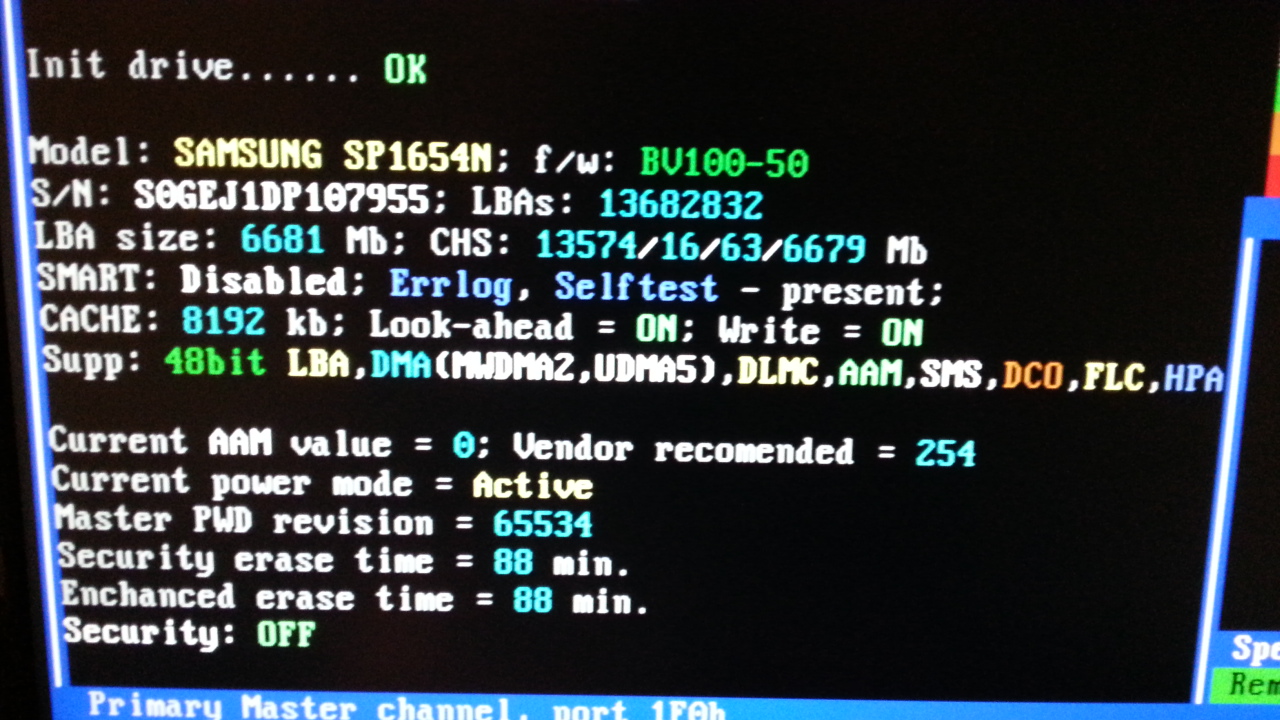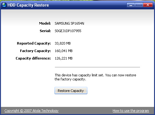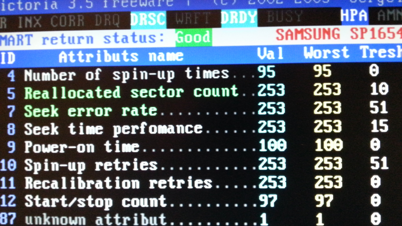 HDD Samsung 160GB, стоял в старом ПК с мат.платой Asrock 865GV и работал как положено, был разбит на 2 лог. диска и правильно определялся объем. Мат.плату с др. "кишками" продал, а винт отдал другу, у которого Gigabyte g31 и вот у него сразу начались проблемы, везде, что в WinXp, что в БИОСЕ показывает 7000МБ (6,5Гб). Он так же пробывал подключить к др. ПК с мат.платой Gigabyte P35, результат 6,5Г, на моем ПК стоит Gigabyte P31 Win7, и тоже 6.5Г. Никогда никаких проблем с этим HDD не было, работает как и должен работать, без стуков или др. изъянов. Забавно, но все мат.платы Gigabyte с чипсетом g/p 3х.
