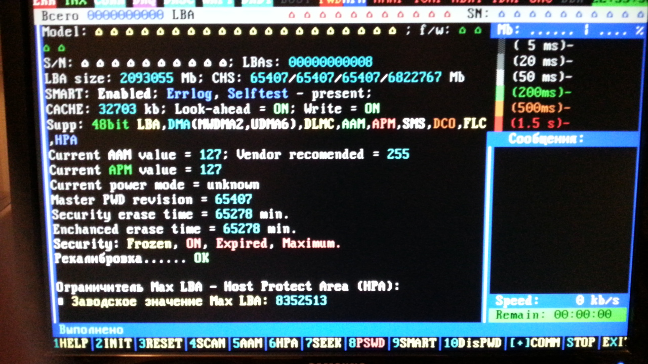 Не выключая? Сгореть же может. С выкл. пк поменял питающий провод. То же самое. re-power hdd вытащил все джамперы, поменял местами интерфейс провод, hdd сошел с ума