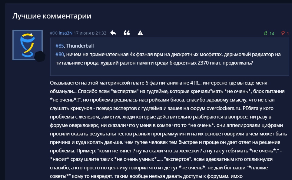 Просто покупая БП Аэрокул, бюджетные матери Асрок и Гигабайт все играют в лотерею - а вдруг мне повезёт ? Вам повезло, ТС - похоже нет. Пускай теперь думает - что я купил не то.