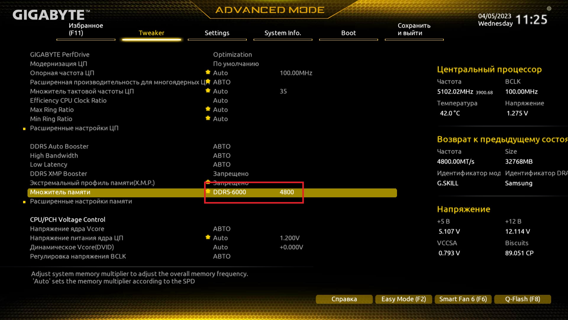 qefir Планки установлены правильно, в первый и третий слот. G.Skill RIPJAWS S5 2х16. Попробую поиграть с напряжением, но не понятно почему 4800. Биос обновлял до F4, из коробки был F2. Там что то с поддержкой памяти как раз было. Но и до обновления память работала на 4800.