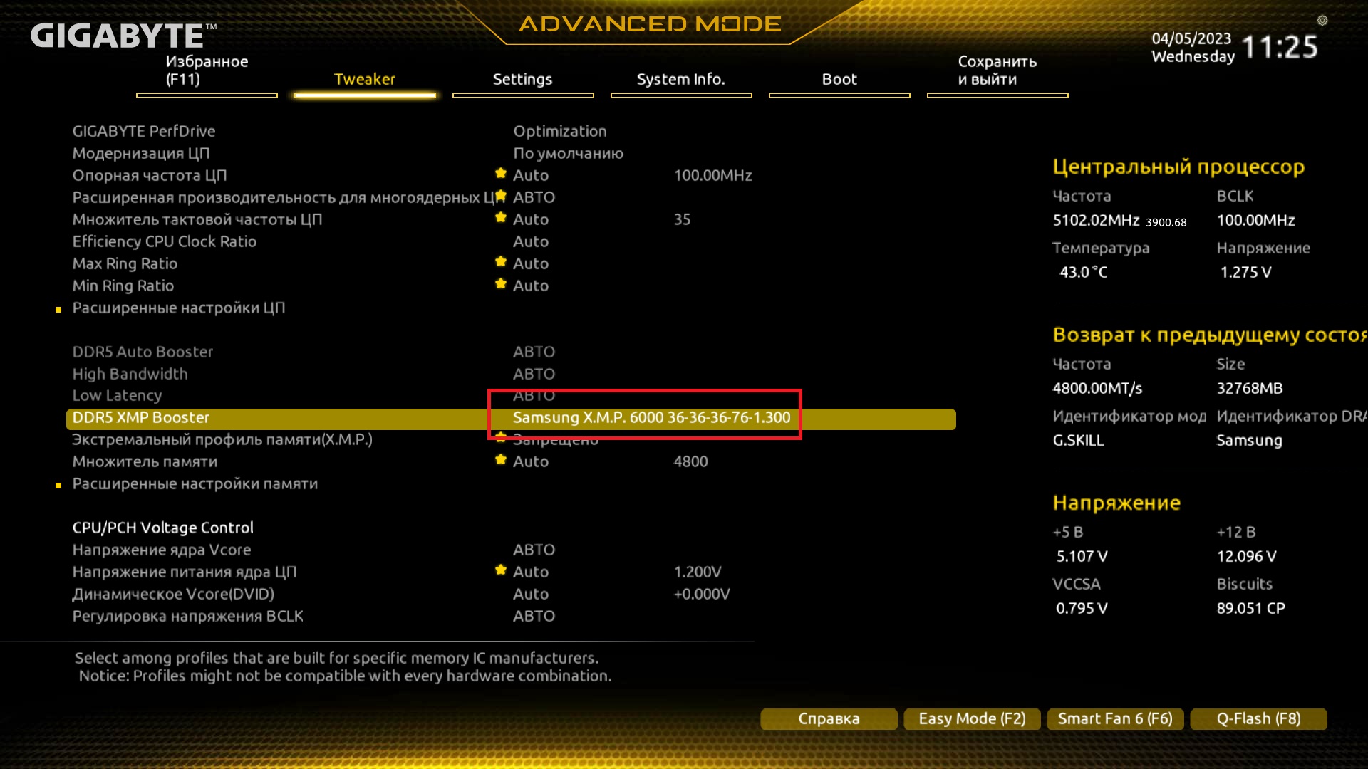 Чёт нивкакую не хочет брать 6000. Пробовал и так и сяк. Не нашел где настраивается напряжение памяти, точнее нашел, но там какие то странные значения 1.100. Хотя планки по идее на 1.35 работают. Что бы я не менял - система не стартует. Ниже скрины того, что пробовал.