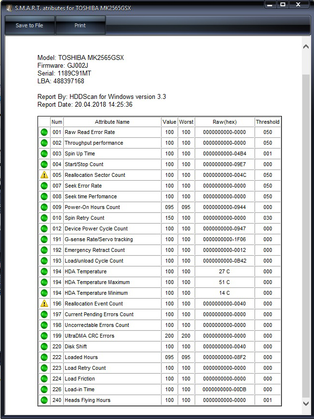 TuMko есть понятие переназначенных секторов и претендентов на переназначение. Так вот переназначенных уже 76 штук, а претендентов на переназначение на данный момент нет. можно для профилактики пройтись полным форматированием по харду прогой hdd low level format tool, перекинув данные с него, если нужны.