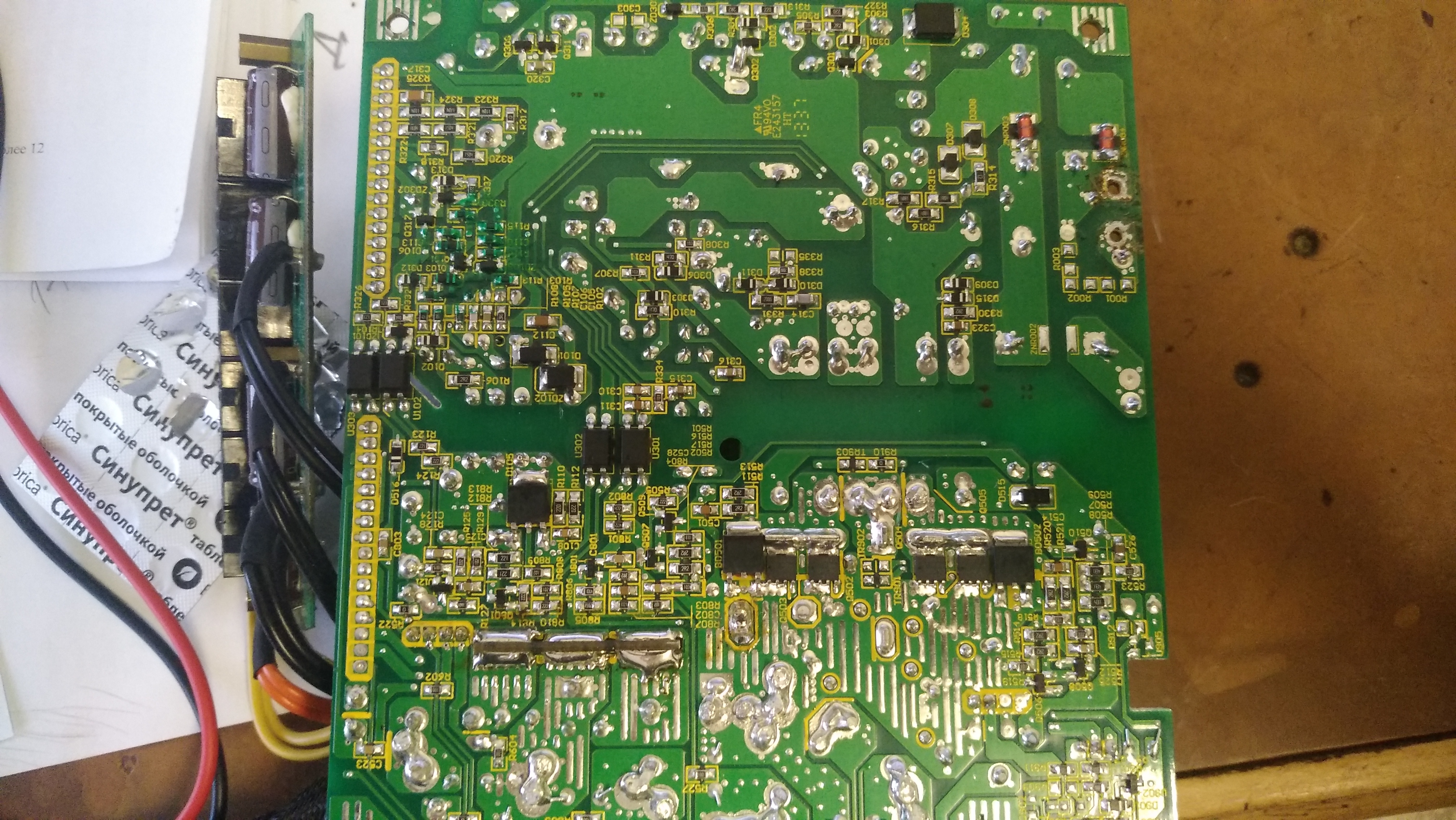 Мучаю блок SSR-550RT с аналогичной проблемой (может не включаться после софтового выключения). Плата естественно отличается от показанных в теме. Можно поинтересоваться, откуда и куда идет цепочка упомянутых резисторов? В моем случае из похожего вижу: * 3 шт по 1.8МОм идущие от входа диодного моста (где переменка), R315-R316-R317, потом идет пара диодов [A7] от каждого из AC входов моста, соединенных катодами - т.е. в этой точке будет "плюс", дальше 0 резистор, цепочка из упомянутых 3-х, ну и 2 конец - еще не смотрел куда идет, то что выше написал по сделанному раньше скану платы. * От плюса высоковольтной банки цепочка из [0]-R323-R324-R325 все по 1.1МОм к 4 ноге платы ШИМ. * От плюса высоковольтной банки цепочка из R320-R321-R322 все по 1.5МОм-1.5МОм-1.6МОм к 5 ноге платы ШИМ.