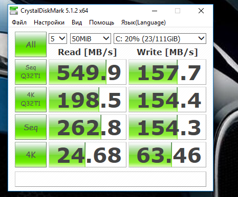 нет надо попробовать ) искать LiveCD с CrystalDiskMark найду скачаю отпишусь. У меня есть LiveCD но он без CrystalDiskMark ) LiveCD столько что куча в интернете .