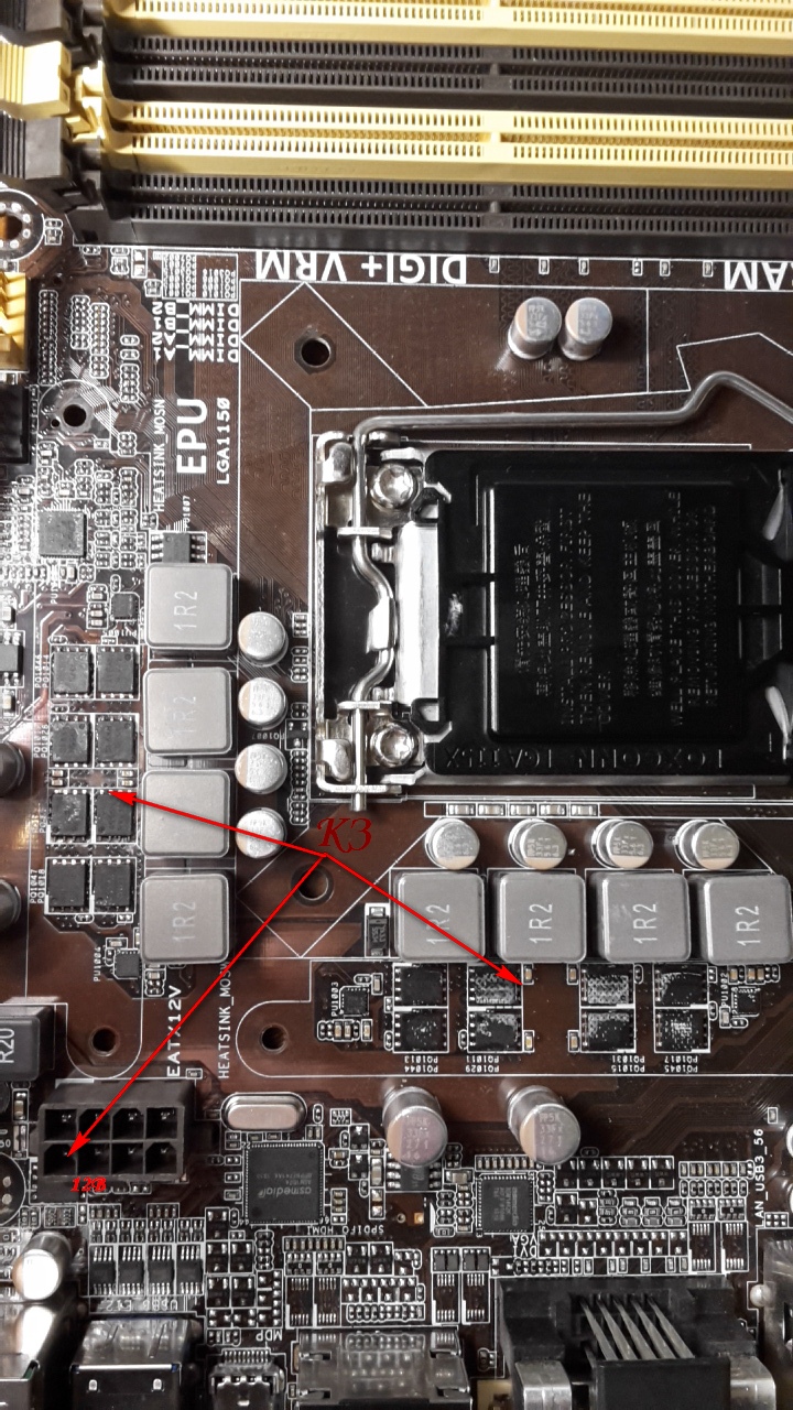 НО затем прозвонил MOSFETы питания процессора - все целые. По крайней мере нет КЗ между Sourse и Gate на всех транзисторах.