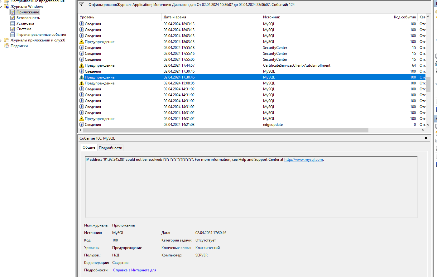 Bigsun Что-то сегодня вызвало ошибку и сервер завис в 19:41. При этом: 1) При включении монитора показался черный экран 2) Подключиться по локальной сети через RMS/AnyDesk не удалось — сервер не в сети. 3) При этом удалось зайти на локальный сайт на "Open Server" (А сайт берет данные из Mysql с этого сервера)