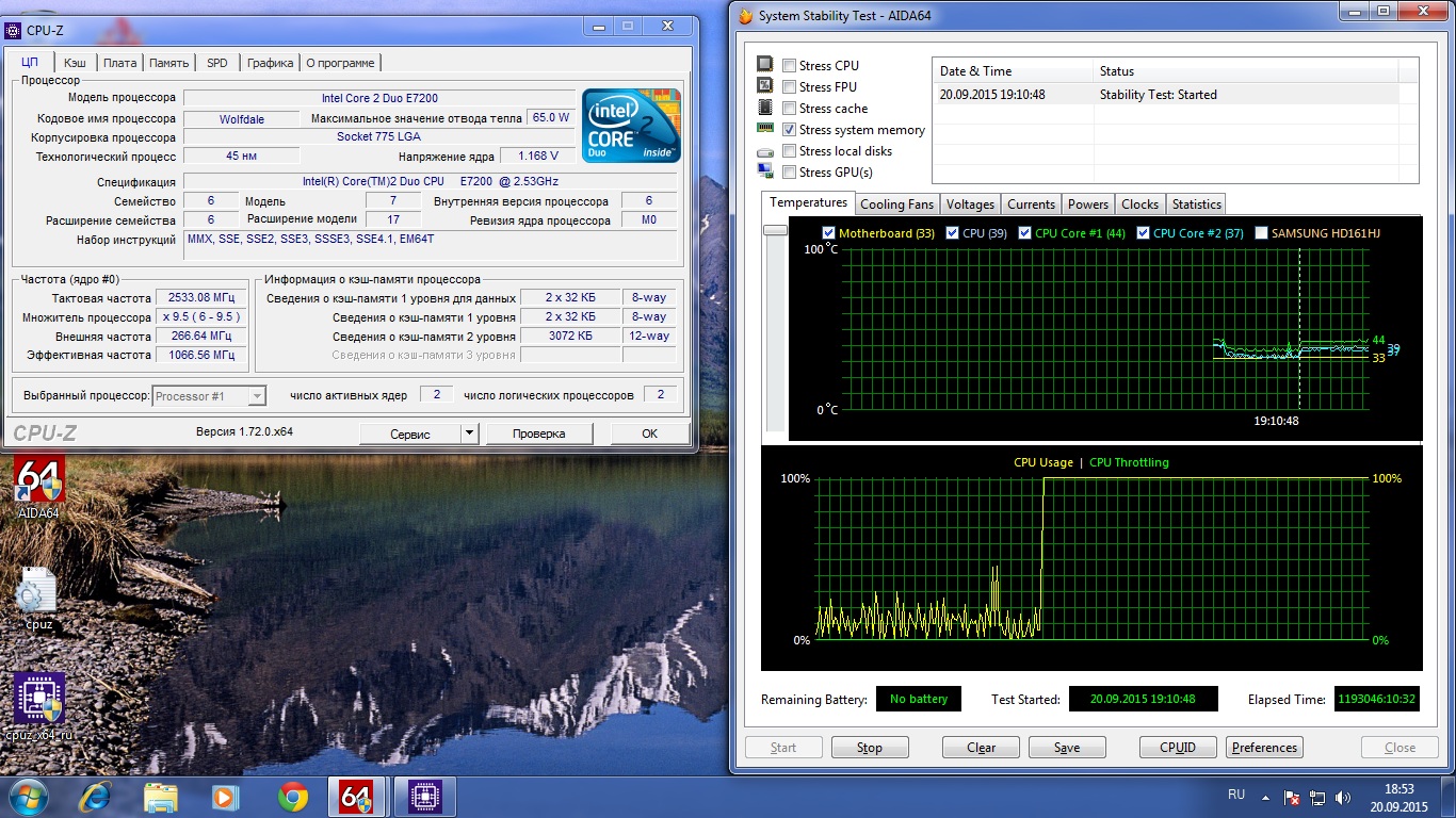 Godlike66 Память в норме, сейчас пересобрал систему с DualCore Intel Core 2 Duo E7200, 2533 MHz (9.5 x 267) Кстати у этого процессора внешняя частота 266МГц. Работает все стабильно, тест в AIDA64 проводил 15минут. Никаких сбоев.