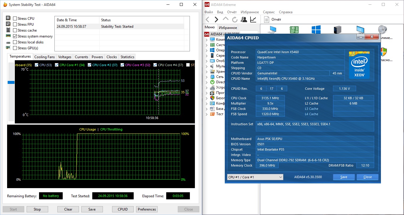 P.S. ИМХО, маловато фаз питания на Р5К SE для 4 ядерников, том более для X5460... vrm там скорее всего просто огонь, если рукой во время теста дотронуться.