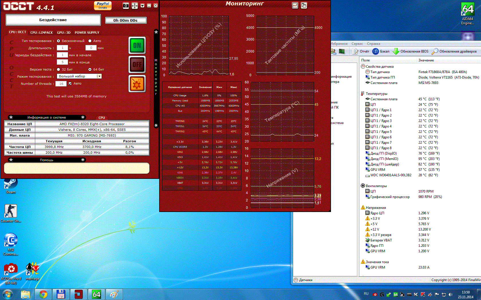С ноября месяца началась приб. следующая проблема: если компьтер был долго выключен и в комнате прохладно было, то после запуска тяжелого 3д приложения фпс через минуту-две падает резко до 20, затем через 5 сек гаснет монитор и венты на видеокарте включаются на 100%, помогает перезагрузка и прогрев видеокарты каким-нибудь бенчом. Что может быть?