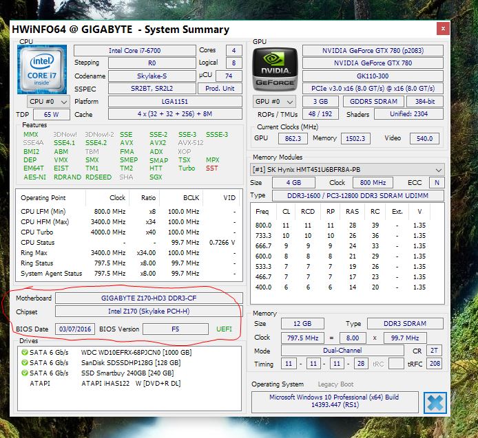 Всем доброго времени суток! Суть проблемы такая, есть мат. плата GA-H170M-D3H DDR3 (скрин системы ниже, там правда на скрине плата другая) пыталсь установить четыре планки памяти на нее (такие как на скрине) в биос захожу все видит т.е. 4х4 = 16 Гб а система не грузится (Винда не загружается) работает (грузится) только с тремя планками в чем дело? Еще такой косяк заметил (не знаю правда косяк это или нет) на плате GA-H170M-D3H DDR3 есть второй разъемы PCI-E (верхний х16 и нижний х4 для видеокарты) я из верхнего слота переставил видеокарту в нижний, ничего не происходит, изображение не выводится, что только не делал, в чем может быть дело? Должна видеокарта в этом разъеме работать (вентиляторы на карте работают)?