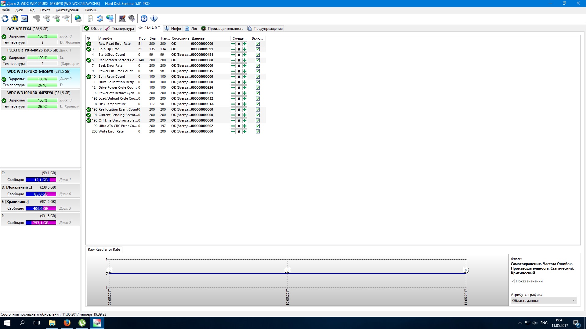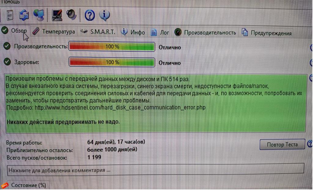Здравствуйте, проблема такая: периодически отваливается жесткий диск, особенно часто при холодном запуске компьютера. Сетовал на жесткий диск, заменил, проблема осталась. Установил Hard Disk Sentinel, пишет ошибки (см. скрин) в проблемах со связью с компьютером. Материнка Asus H81M-E, Блок питания Chieftec APS-550SB, жесткий диск WD Purple (модель точно не помню, не дома). Может с бп проблемы? гонял под нагрузкой систему, ничего не отваливается. Провода Сата менял, все тоже самое, порты вроде тоже (комп не мой лично). На моем компьютере точно такой же жесткий диск, и по статистике из того же Hard Disk Sentinel за 150 дней - 708 пусков, против 1200 за 64 дня как видно на фото.