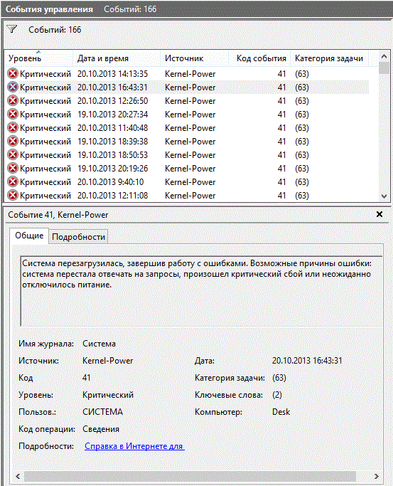 Добавлено спустя 2 часа 43 минуты 45 секунд: Вот что нашёл в журнале событий (см. рисунки). Пишет, что не хватает питания?