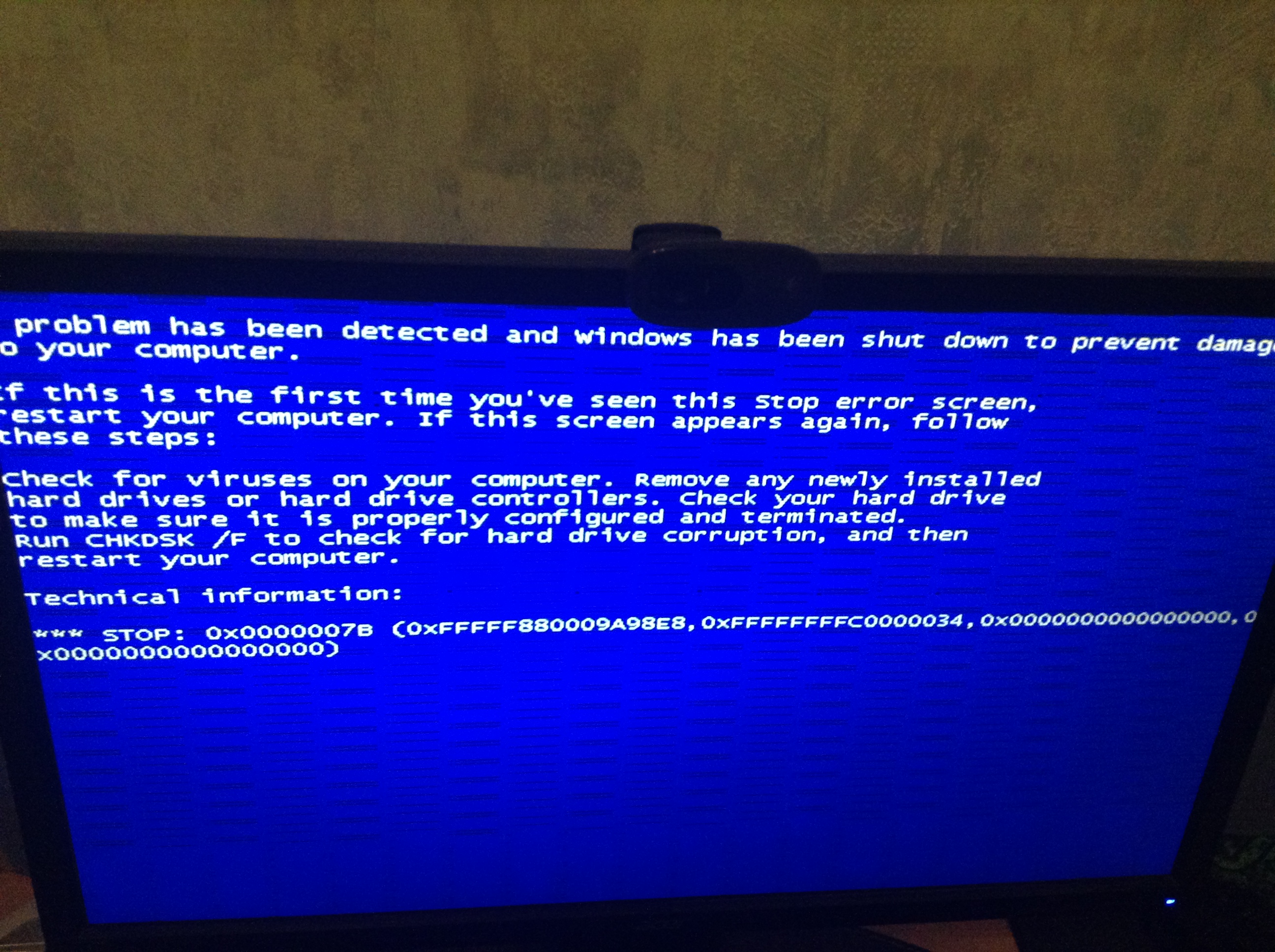 7B это ошибка когда в биосе выставили AHCI поставили операционку, потом сбросили биос и там по умолчанию режим IDE выставился, и ос не грузится, нужно зайти в биос и выставить AHCI.