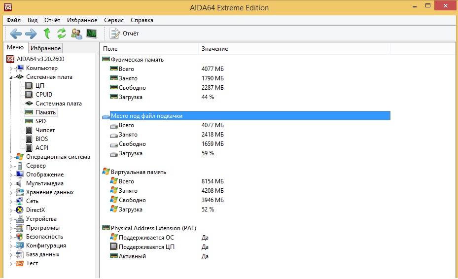 Вообще ситуация следущая - стоит лицензионная Win 8.1 на SSD только что поставленная, оперативки 2 планки по 4 гига, но сведениях о компьютере написано, что установленная память 6 гигов(доступно 3.98). Собственно в этом и проблема, винда x64 в msconfig максимально доступная память 6144. Cpu-z видит 2 планки по 4 гига, все как положено. Аida же показывает физическую память 4 и место под файл подкачки 4 гига, хотя он на всех дисках отключен.