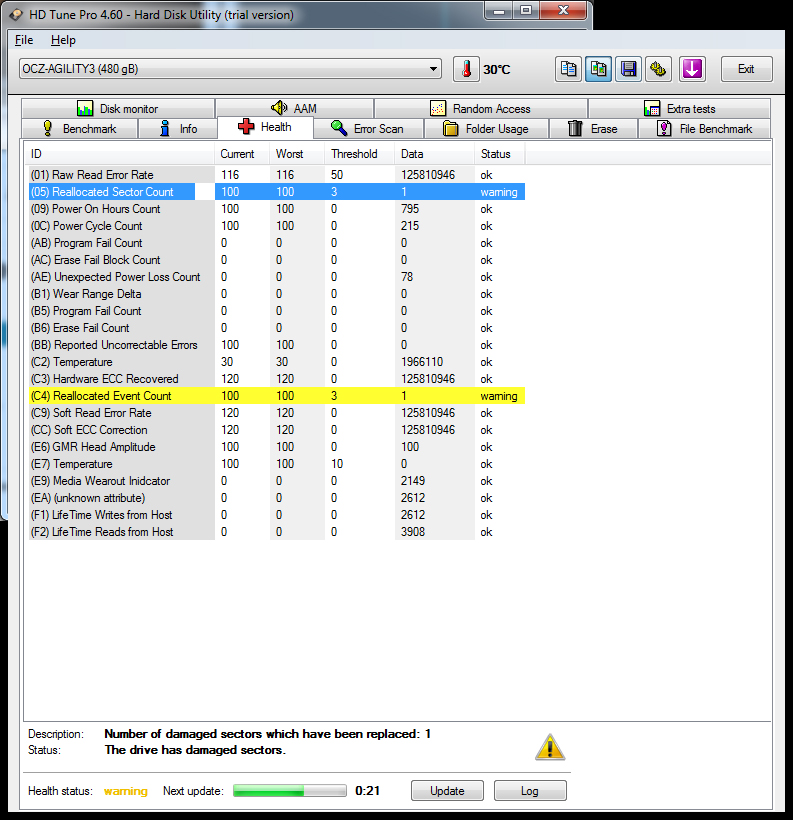 Доброго времени суток, подскажите, нормально ли себя ведет винт OCZ. вся его история такова: стоял вместе с плекстором в macbook pro, естественно оба были в hfs, плекстор был системным, после сборки системника переехали в него, обы были отформатированы в ntfs