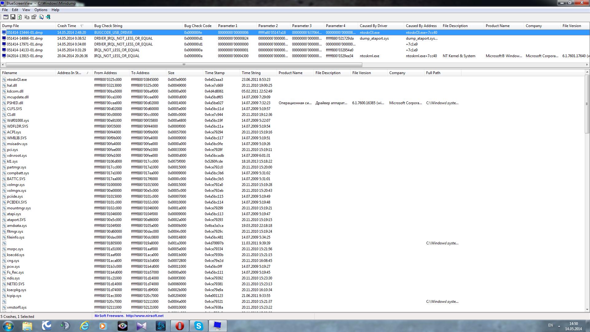Здравствуйте. Начали сыпаться синие экраны. Причем после каждого БСОДа на экране появляется "Нет сигнала" и железо не реагирует на попытки перезагрузки или выключения.(помогает только удержание кнопки выключения либо выключение сетевого фильтра). После выключения одним из выше указанных способов мат.плата не стартует (никаких писков нет, монитор показывает черный экран, лампочка мат.платы горит, кулеры работают ). После несколько повторных "выключений и включений" все же раздается писк и система продолжает работать в обычном режиме...до следующего БСОДа. Так же несколько раз после синих экранов выдавалось сообщение о "Bad BIOS checksum", однако после перезагрузки такая проблема исчезала. Стоит еще добавить, что в последнее время при выключении компьютера ОС выключается, а вот железо нет, кулеры продолжают работать. Иногда вместо БСОДа просто зависает железо, экран становится серым. Хотелось бы разобраться, что именно вырубает систему. Сам смотрю в сторону мат.платы либо видеокарты. Все дампы/скрины экранов прилагаются. Железо в разгоне не было, вздутых конденсаторов нет. Характеристики железа: