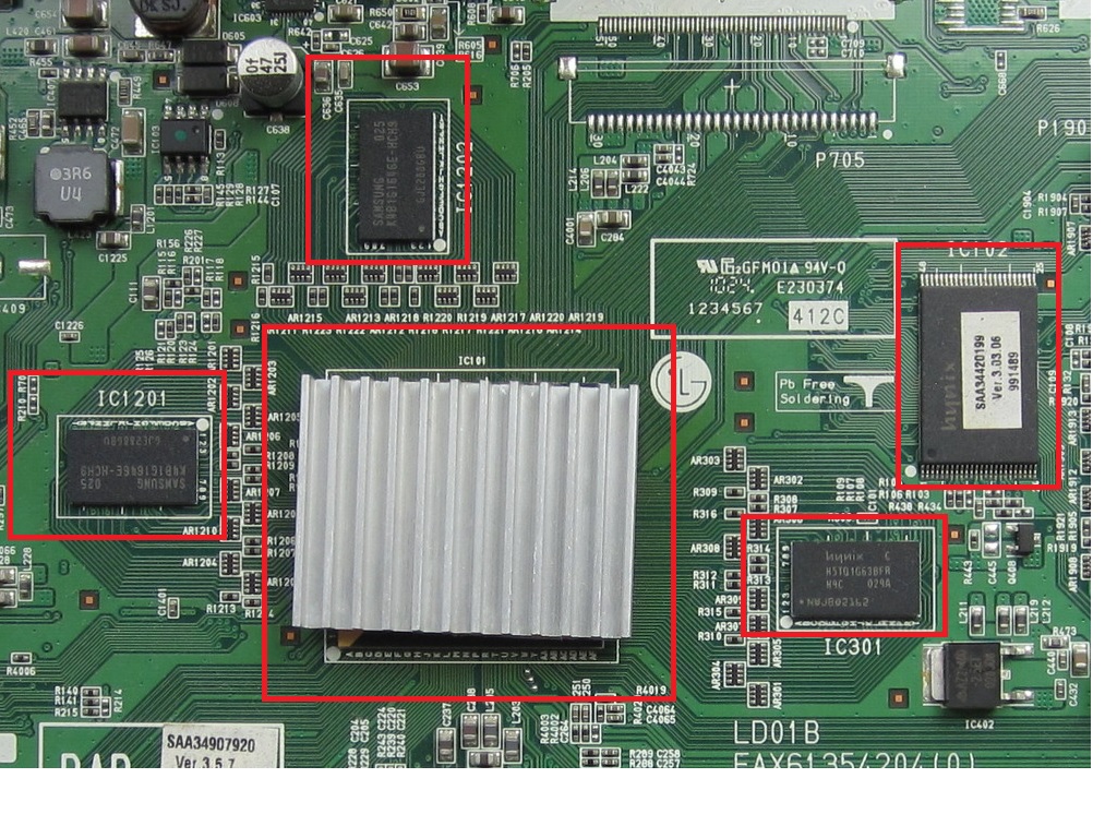 ВОТ фото , на фото видно 3 микрухи памяти , 1 нанд и под радиатором процессор