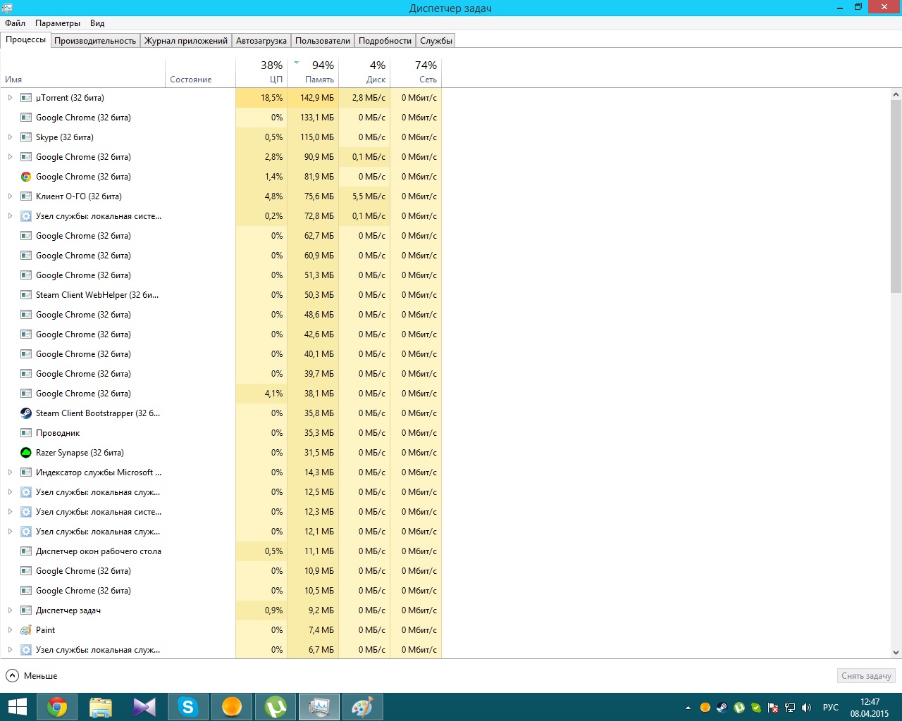 kriOree Ответ раз-Google Chrome. Ответ два-у меня только на 4Гб тормозить начинает, при запущенном в постоянку AutoCad 2012 и Гранд-Смете 5,4+ОО 1,4 (Calc). Ну и та система не выключаться может месяцами. А в uTorrent находили скрытый майнер.