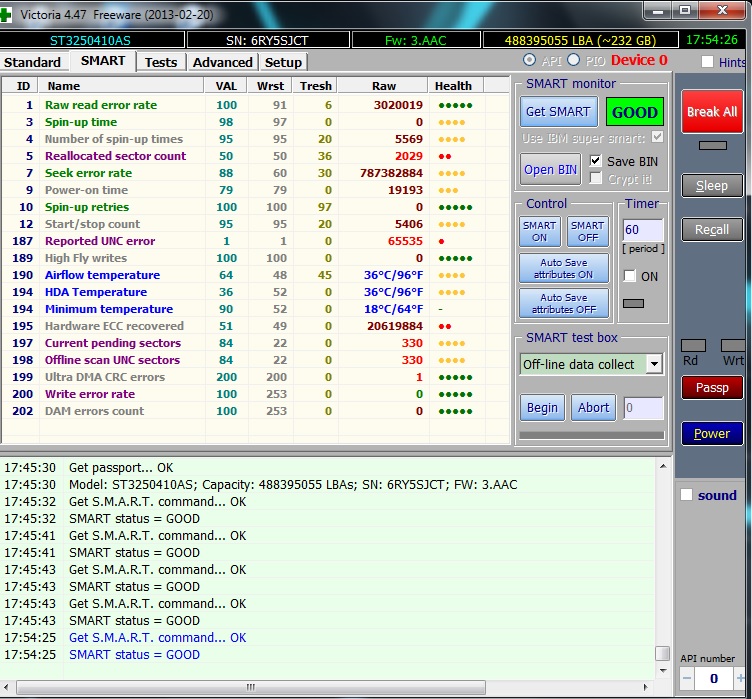 Подскажите что делать с винтом.Читал что можно "обрезать(разделить)" на части(тома) рабочие и не рабочие,что позволит в дальнейшем использовать целое дисковое пространство.Ремапинг не делал,пишут что встроенный софт винта сам со всем справляется. зы: Статус смарта иногда good иногда bad