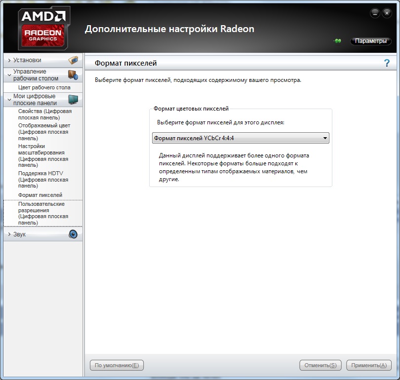 Формат пикселей попробовал поменять на YCbCr 4:2:2 и вроде бы всё стало нормально, но всё равно как то не так как было раньше. Хотя может быть уже привык к неправильно изображению =) А что это за формат пикселей такой. как это понимать и почему он как то сам поменялся ?