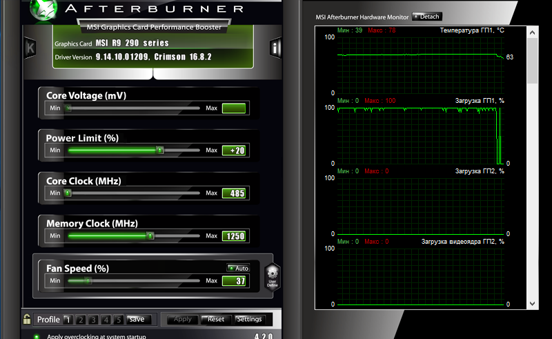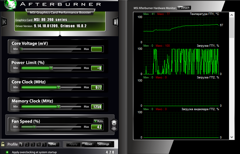 Всем доброго времени суток! В последнее время у меня очень часто вылетала ошибка " Видеодрайвер отключен и был успешно восстановлен", после после множества попыток исправить эту ошибку, я решил снести винду и начать так сказать с чистого листа. Всё решилось , но как вдруг я заметил что с загрузкой ГП в MSI Afterburner не всё в порядке. Во всех играх ( такие как GTA 5 , Dota 2, CS: GO) Загрузка ГП очень сильно скачет от 0 до 100 , и меня это очень сильно настрожило. Это ведь не нормально? На графики просто больно смотреть :