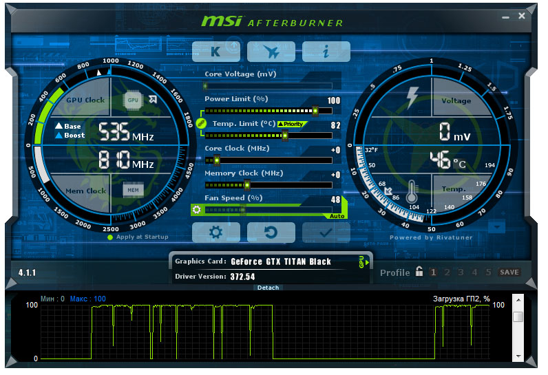 Stress Частоты вк и температура не поднимаются выше указанной при максимальной загрузке, версия драйвера 372.54, вк - Titan Black(все это есть на скриншоте). Это на порядок ниже базовых частот, заявленных производителем.